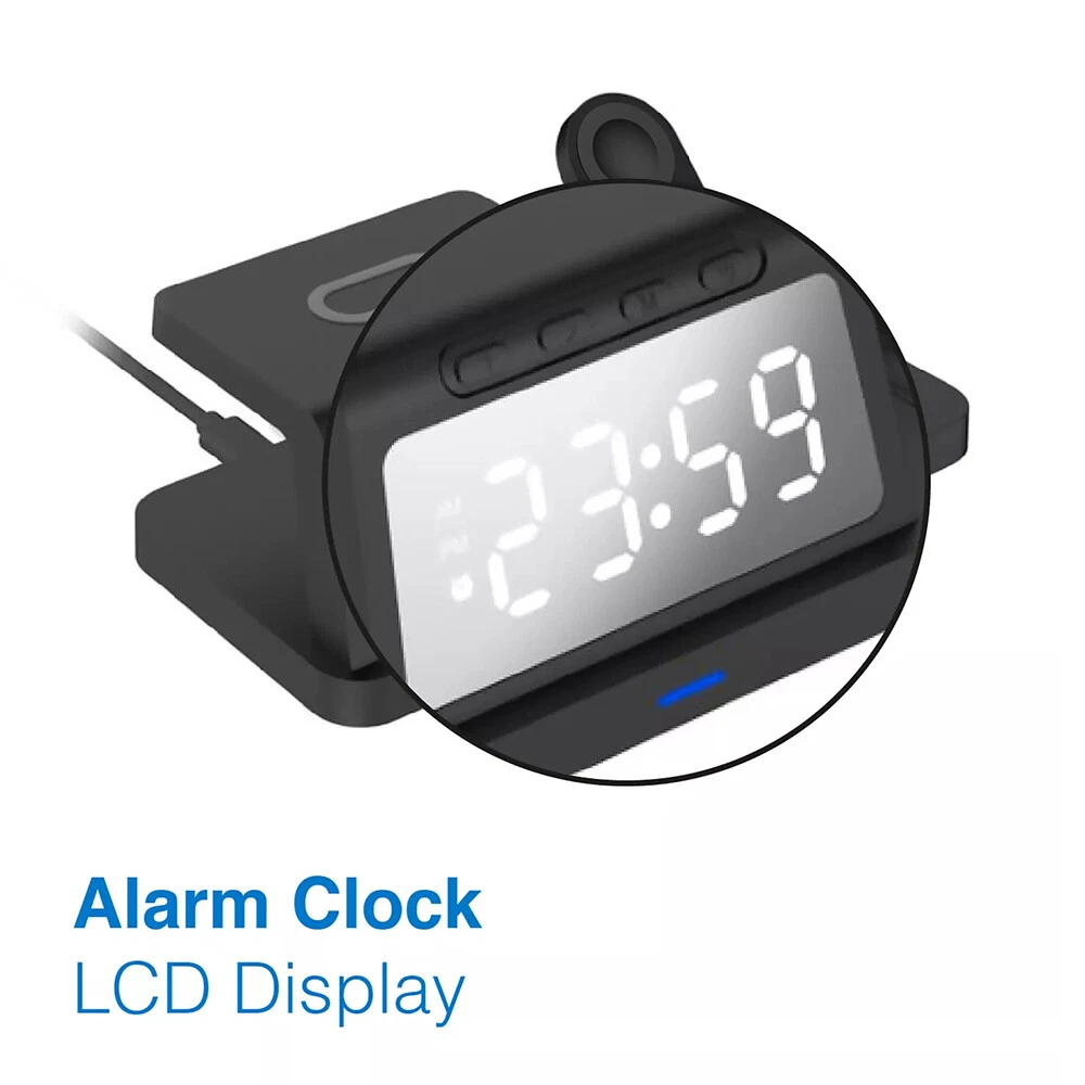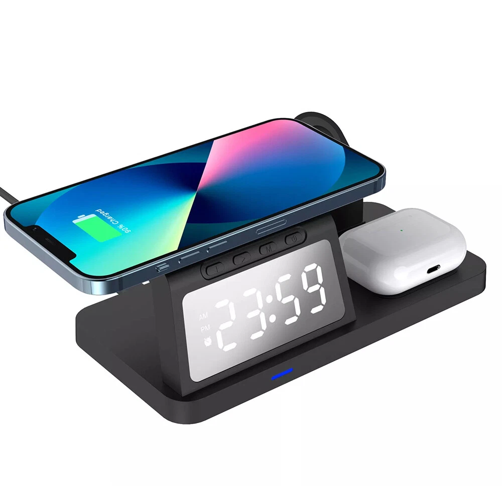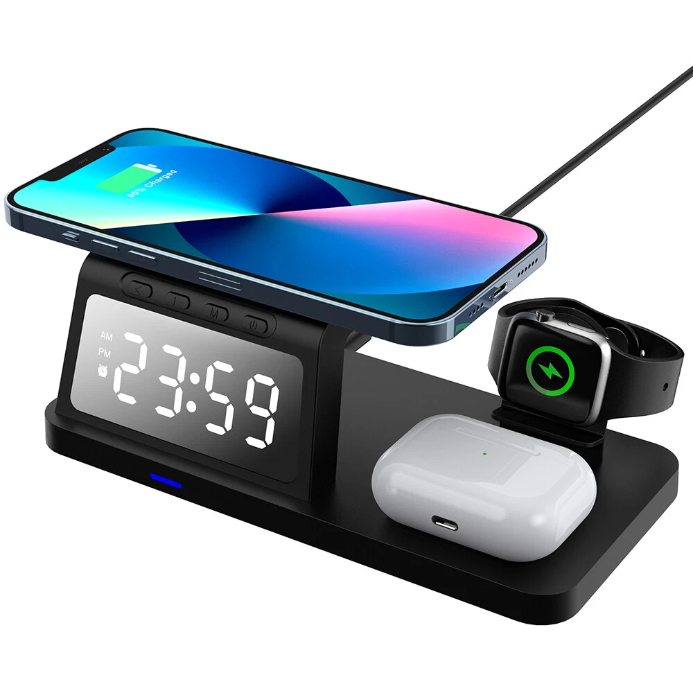 Picture Gallery Description Features: [5-in-1]:The 5-in-1 wireless charger can wirelessly charge up to 3 devices, you can also connect 1 device for wired charging. It includes night light and alarm clock. LED Clock Display】:Equipped with time display and alarm clock, this charger is very useful to keep on your desk. [Widely Used]:The 5-in-1 charging cradle can be used in the bedroom, kitchen, office and anywhere you like. 5-in-1 Design】: The wireless charging station can charge your phone, Apple Watch, and headphones at the same time, leaving your desk and bedside table tidy and organized without messy cords. For better charging experience, please use QC 3.0 power adapter (QC 3.0 adapter not included). 【Safe Charging】:The cordless phone charger provides temperature control and voltage protection as well as short circuit prevention to ensure safe and stable charging. This wireless charger provides you with a safe experience. Anti-slip silicone pads on the base and bottom protect your device from scratches and slips while charging. 【Universal Compatibility】:Apple charging cradle for most Apple devices. Compatible with iWatch series 8/7/6/SE/5/4/3/2/1; Compatible with AriPods Pro/3/2/1; Compatible with iPhone series. (Not compatible with Samsung watches). Compatible with iPhone 8/X/11/12/13/14 series, Samsung S10/S20/S21/S22; Note8/10/20/21 series; other Samsung series that support wireless charging and all other cell phone brands that support wireless charging. Attention: 1.For a fast charging experience, please use a 9V-3A or 12V-2A power adapter (adapter not included). 2.The watch charger is only for Apple Watch, it can't charge Samsung Watch or other brand watches. Specifications: *Product name: 5-in-1 wireless charger *Mobile phone output: 5W/7.5W/10W/15W *Watch output: 2.5W (max) *Headphone output: 3W (max) *Charging distance: 1-8MM *Charging efficiency: ≥75% *Product Material: ABS *Product color: black Package List: 1*5-in-1 wireless charger 1*Type-C cable 1*User Manual Attention: 1.Not included not include the power adapter! 2.Item is limited to charger only, excludes headphones, watch! 3. Due to manual measurement, please allow a difference of 1 cm error! 4. may vary according to light color or monitor tint! Shipping Policy Payment Policy Return Policy Shipping Policy 1. We only ship to the confirmed address provided by eBay. Please make sure your ebay address is 100% matches the address you would like us to ship to. If not, please let us know before we sent you the package, or we will not be responsible for any loss. Hope you could understand. 2. Orders will be processed instantly and dispatched within 1-2 business days except hoilday, so we do NOT accept any email/message note after you place orders. Payment Policy We accept PayPal only. We only ship item to your PayPal verified address. Please pay attention that import duties, taxes and charges are not included in the item price or shipping charges. These charges are the buyer's responsibility. Please check with your country's customs office to determine what these additional costs will be prior to bidding/buying. Return Policy 1. We offer 60 day money back or replacement guarantee. In addition, it allows customers to return new and unused products in their original factory condition for any reason within 60 days from the date of purchase. 2. Although we test each item and they are packed professionally, few item (less than 0.1%) might be damaged during the shipping. Please feel free to contact us within 4 days after you receive your package about replacement. 3. If you don't receive items over 35 days, please make sure to contact us before leaving any neutral or negative feedback. We'll try our best to help you solve the problem. If we authorized the return, customers will get an email with instructions for returning the item. Email will be replied within 24 hours on Chinese business hours. On Dec 22, 2024 at 19:14:44 PST, seller added the following information: