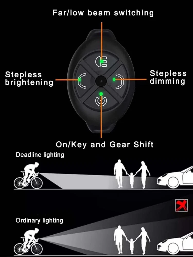 Wireless Control Bicycle Headlight High Capacity Waterproof Strong Beam