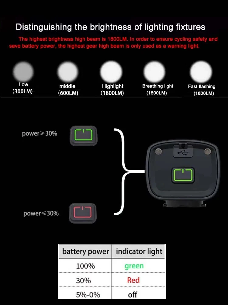 wireless remote control bicycle lighting, multifunctional bracket reverse high beam light, cut-off line, anti glare bicycle light, bicycle glare flashlight, waterproof bicycle lighting and bicycle accessories suitable for various road conditions. Product specification: Waterproof grade: IP65 (light rain, splashing water) Product material: aluminum alloy Exposure distance: over 300 meters LED: Flat car lamp beads Bracket: Multifunctional extension bracket (4 bracket options) Charging and discharge protection: built-in overcharge and discharge ICs. Extending battery life Working voltage: 3.7V Product color: black Lighting mode: strong light lighting; Medium light; Weak light; Burst flash Intelligent mode: automatic start stop function LED color temperature: 7500K Charging type: TYPE-C 2A fast charging - USB charging Battery: Built-in 5000 mA/h rechargeable lithium battery Switch settings: wireless remote control Lens type: cu