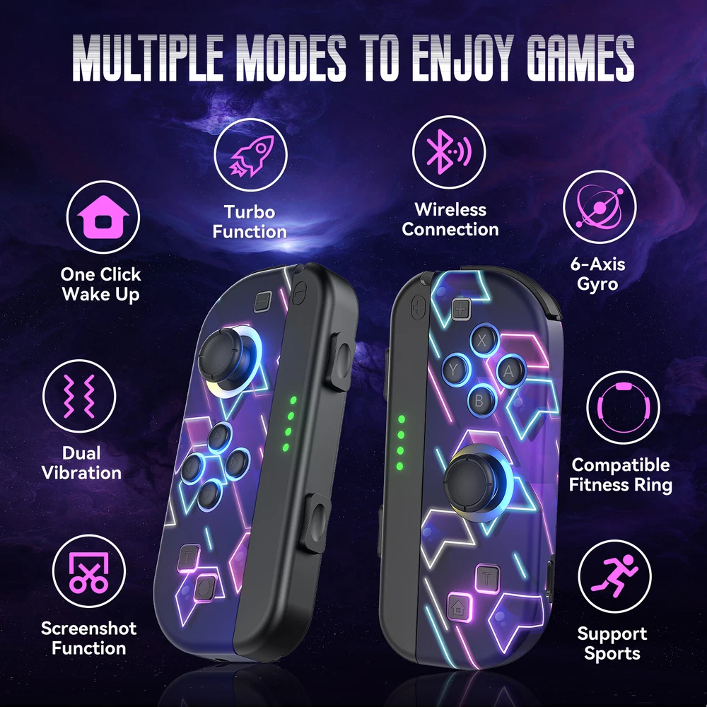 Product Description About this item 【Comprehensive Compatibility】 - Our replacement S-witch controllers are designed to be compatible with S-witch/Lite/OLED consoles, ensuring seamless gameplay on all platforms. (Note: No NFC (amiibo) or IR movement) 【 Light adjustment 】 Customize the lighting to create the perfect gaming atmosphere, enhancing your gaming experience. 【Responsive Gameplay】 - The wireless joystick controller features a full set of fast and responsive buttons that give you a competitive advantage in fast-paced action games and improve your overall gaming performance. 【Wake-up & Screenshot Function】 - This left-right controller supports the wake-up function. Press the “HOME” button for 1-2 seconds, then the switch will be activated. You can also view the screenshot and share it with friends. 【Motion Control & Dual Vibration】 - The improved wireless controller enables extremely precise speed, position and control to quickly start/stop movements. 6-axis gyroscope, accurate aiming and shooting; Different levels of double buffer feedback ensure the ultimate enjoyable gaming experience. 【Package & Service】- Wireless replacement for s-witch controller x 2 (left and right, can be used independently), manual x 1, Type-C cable x 1, we offer 24 hours online advice. If the product is damaged, please feel free to contact us. Free replacement service within one year. How to connection? 1. Open the S-witch console, click the settings menu button on the main page interface, and click the 'System settings' option to enter the next level options menu. 2. Click the 'Airplane Mode' option, then click 'Controller Connection(bluetooth)' to turn on the Bluetooth function (if the console does not have this option, skip this step) 3. Press and hold the PAIR button for 3 seconds to start the pairing, the LED is flashing, open the console home page and click the 'Controllers' menu, and then click 'Change Grip/Orde'. The console will automatically search for the pairing controller, about a few seconds After the handle and the console are automatically paired successfully, the corresponding channel light of the console is always on; after connecting, click the A button and select 'Close' to exit to the main interface, and the game operation can be performed. After 60 seconds, if the pairing is not successful, the handle will shut down. About Us Welcome to our store! We are a professional worldwide wholesale company. High product quality, reasonable prices, excellent customer service and a reliable credit standing is our tenet.If you like our products, please add my eBay shop to your "My Favorites" list. All the products we are selling include factory warranty , don’t cover items that have been abused, burned and damaged in any form. Payment We accpet payment via PayPal , E-wallet , some Credit Card , Direct Debit and Other specific payment methods . Import duties,taxes and charge are not included in the item's price or shipping cost.These charges are the buyer's responsibility. Please check with your country's customs office to determine what these additional costs will be prior to bidding or buying. Insurance is included in the Shipping & Handling costs paid. Shipping Items are generally shipped out in 1-3 business day after your payment has been cleared (Sat. & Sun. excluded.) Orders from the United States Warehouse will be shipped out via USPS or UPS. The shipment usually takes 3-7 business days(Saturday and Sunday excluded), if you need the item urgently, please contact us for detail before purchasing. Local pick up is not available. Orders from China will be shipped via Belgian Post or Post NL.The shipment will take 15-35 working days,please contact us if you didn't get the parcel for a long time. We do not ship to APO, FPO, Alaska, Hawaii and Puerto Rico addresses, and we are unable to ship to PO BOX for this item. Please provide your psychical address. Returns You have 60 days to return it from the date it was received. All returned items must be in the original package and you must provide us with the shipping tracking number,specific reason for the return and your ebay ID. We will refund your full winning bid amount , upon receipt of the item in its original condition and package with all components and accessories included. Contact Us Dear buyers,we appreciate your business, if you are satisfied with our service , please leave us a Positive feedback and rate the details of the transaction (Detailed Seller Ratings) with a " Pefect Stars ". We aim to provide best services and products in exchange your maximum statifaction. We will do our best to resolve your issue till your satisfaction. O ur working time is: 09:00 AM-18:00 PM(Chinese time from Monday to Saturday) .All emails will be answered within 24 hours except weekends and holidays. powered by