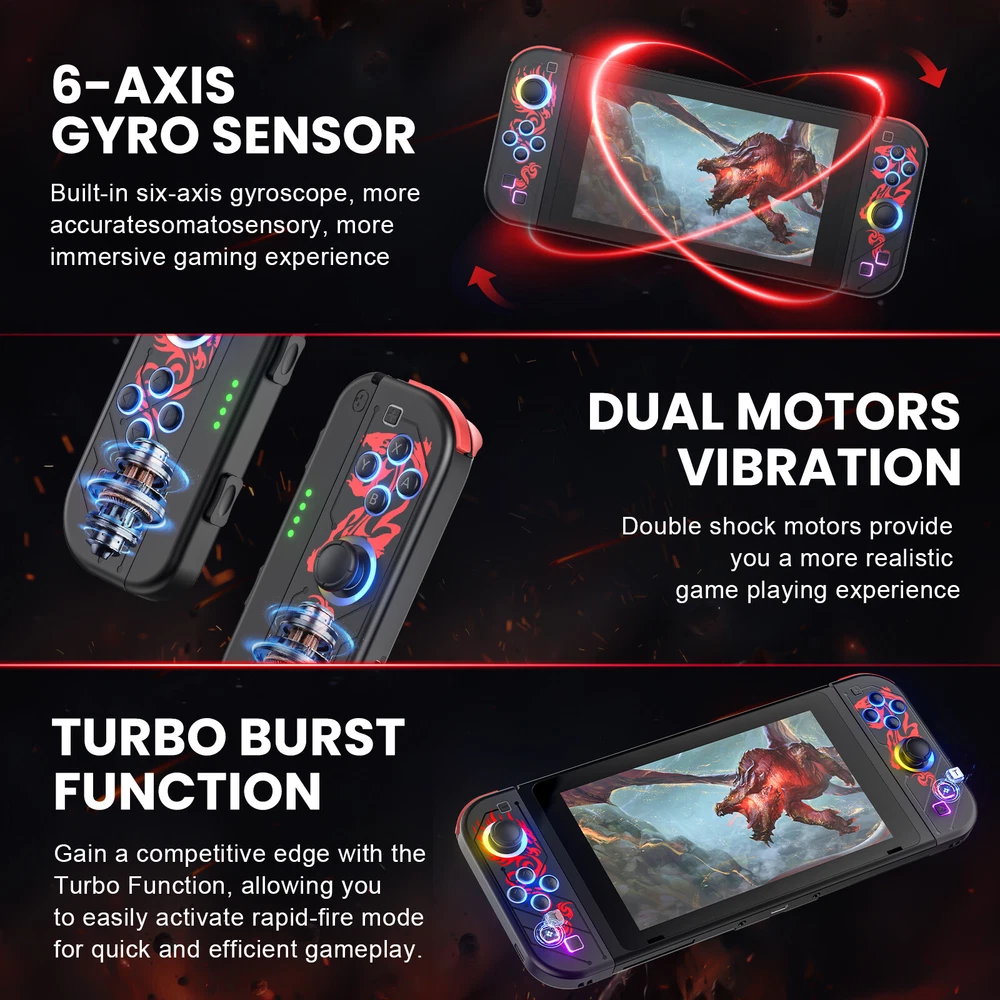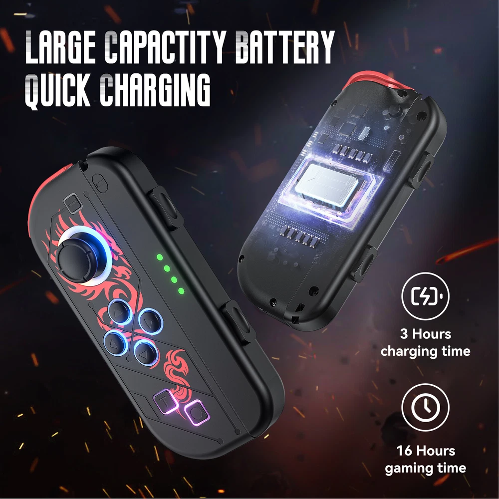 Product Description Description ** Designed for Switch & Switch Oled - Ideal replacement for Switch Joy-con; The same set of Joy-con buttons; Could be used independently in each hand or attached to console for use in handheld mode; Superior textured crystalline button; Anti-scratch durable high-grade ABS material; 2023 Newest upgraded version - supports updating controller wirelessly via Switch console directly ** Ergonomic Design for Long Playtime - Switch Joycon the switch controllers offer several surprising new ways for gamers to have fun; With the unique grip and ergonomic design to rest your palms and index fingers. Convenient to hold When using your Switch as a handheld. You can now play for hours without your hands hurting. Particularly suitable for large hands. The built-in rechargeable battery in each Joy Con controller provides 15-20 hours gaming session. ** Built-In Linear Vibration Motion Control - Vivefox joy cons for switch nintendo designed with dual motors and built-in 6-Axis Gyro to detect detail movements, our switch controllers are capable of extremely precise speed, position, and accurate control, rapid start/stop motion. It helps promote a more realistic gaming experience for the player. Support turning off the "vibration" to save power ** Wide Compatibility & Stable Performance - Our switch joycons has strong anti-interference and stable signal, you can enjoy the game without lag issue. Perfect for almost all Switch games. Such as the legend of Zelda, Splatoon 2, Mario Kart 8 Deluxe, Just Dance, Pokémon Sword & Shield, Mario + Rabbids Kingdom Battle, Carnival Games, Luigi's Mansion 3, Super Mario Party, Minecraft, Super Mario Odyssey and more Features: 1.Compatible with Switch console and supports wireless and wired connection. This works with Nintendo Switch and Nintendo Switch Lite. 2.It can be used as an entire controller also can be used as 2 independent controllers. 3.No need to install any driver, it can be used once connected to Switch console. 4.One-key connecting method for ease of handling. 5.Built-in with 400mA lithium battery, it can be continuously used for about 10 hours after fully charged. 6.It supports motion sensing function via built-in Gyro in each controller. 7.It supports vibration function via built-in motor in each controller. 8.It supports capture gameplay screenshots. 9.Multiplayer games can be palyed by connecting more wireless controllers simultaneously to a Switch console. 10.Ergonomic design and lightweight construction make it comfortable even for long hours of continuous gaming. 11.It can be upgraded by update software through USB cable connecting to PC. Package: 1 * Left Joy Pad Controller 1 * Right Joy Pad Controller 1 * Wrist rope for each Controller Note: These replacement Joy-Con controllers are not manufactured by Nintendo but are fully compatible and provide a high-quality alternative at an affordable price. Upgrade your gaming setup with these replacement Nintendo Switch Joy-Con controllers. Immerse yourself in your favourite games and enjoy seamless control and multiplayer fun. Order now and take your gaming experience to the next level! About Us Welcome to our store! We are a professional worldwide wholesale company. High product quality, reasonable prices, excellent customer service and a reliable credit standing is our tenet.If you like our products, please add my eBay shop to your "My Favorites" list. All the products we are selling include factory warranty , don’t cover items that have been abused, burned and damaged in any form. Payment We accpet payment via PayPal only . Import duties,taxes and charge are not included in the item's price or shipping cost.These charges are the buyer's responsibility. Please check with your country's customs office to determine what these additional costs will be prior to bidding or buying. Insurance is included in the Shipping & Handling costs paid. Shipping Items are generally shipped out in 1-3 business day after your payment has been cleared (Sat. & Sun. excluded.) Orders from the United States Warehouse will be shipped out via USPS or UPS. The shipment usually takes 3-7 business days(Saturday and Sunday excluded), if you need the item urgently, please contact us for detail before purchasing. Local pick up is not available. Orders from China will be shipped via Belgian Post or Post NL.The shipment will take 15-35 working days,please contact us if you didn't get the parcel for a long time. We do not ship to APO, FPO, Alaska, Hawaii and Puerto Rico addresses, and we are unable to ship to PO BOX for this item. Please provide your psychical address. Returns You have 60 days to return it from the date it was received. All returned items must be in the original package and you must provide us with the shipping tracking number,specific reason for the return and your ebay ID. We will refund your full winning bid amount , upon receipt of the item in its original condition and package with all components and accessories included. Contact Us Dear buyers,we appreciate your business, if you are satisfied with our service , please leave us a Positive feedback and rate the details of the transaction (Detailed Seller Ratings) with a " Pefect Stars ". We aim to provide best services and products in exchange your maximum statifaction. We will do our best to resolve your issue till your satisfaction. O ur working time is: 09:00 AM-18:00 PM(Chinese time from Monday to Saturday) .All emails will be answered within 24 hours except weekends and holidays. powered by