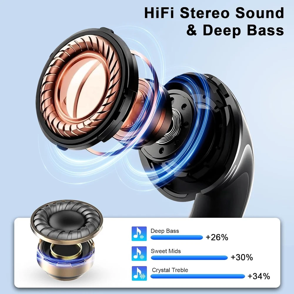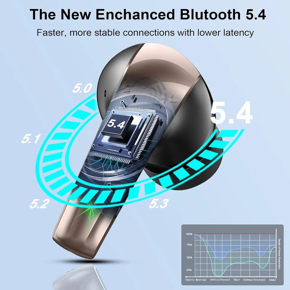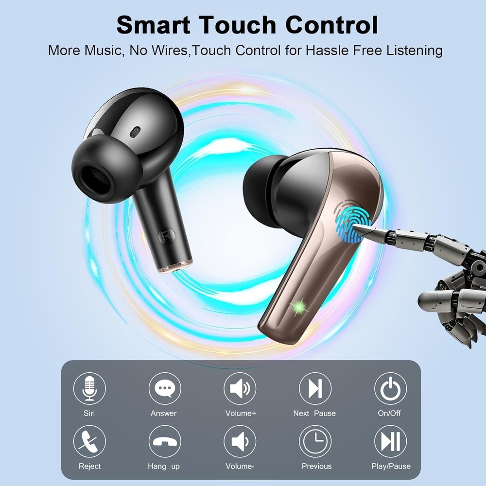 Wireless Earbuds Bluetooth 5.4 Ear Buds 47Hrs Playtime Bluetooth Heapho Description : Faster, More Reliable Bluetooth 5.4: Powered by Bluetooth 5.4, the wireless earbuds ensure faster pairing and a more stable connection than previous generations. Once paired, simply take the earbuds wireless bluetooth out of the case and they’ll quickly reconnect—no lag, no signal drop. A green indicator lights on each ear buds shows the connection status at a glance, so you're always ready for calls, meetings, or music on the go. Sleek Pocket Design & Sweat-Resistant: The wireless headphones feature a sleek stem design with smooth curves and a metallic finish for a high-end, modern look. The pocket-sized charging case makes them easy to carry anywhere. Built to handle daily use, the ear buds wireless bluetooth earbuds are sweat- and dust-resistant—perfect for commuting, walking, sport, running, gym or light workouts travel without worry. Immersive Sound with Noise Isolation: Featuring large 14.2mm dynamic drivers, the noise cancelling earbuds deliver fuller sound, deeper bass, and richer detail—perfect for music lovers and professionals alike. Built-in passive noise isolation reduces up to 80% of ambient noise, so your calls stay clear even in noisy offices, cafés, or crowded transit environments. Ideal for phone calls, remote work, and daily music listening. Long Battery Life with LED Display: No more battery anxiety—the earphones wireless bluetooth offer up to 7 hours of playtime on a single charge, and a total of 47 hours with the compact charging case. Fully recharges in just 1.5 hours, perfect for busy mornings or last-minute trips. The LED display shows remaining battery for both earbuds and case, so you're always prepared, whether at work or on the move. Smart Touch Controls & Broad Compatibility: Each wireless bluetooth headphones features a fingerprint-style touch panel for precise control—adjust volume, take calls, or skip tracks with a simple tap. No need to reach for your phone. Compatible with most smart devices including iPhone, Android, etc., the wireless bluetooth earphones are perfect for hands-free calling, remote working, commuting, and multitasking on the go.