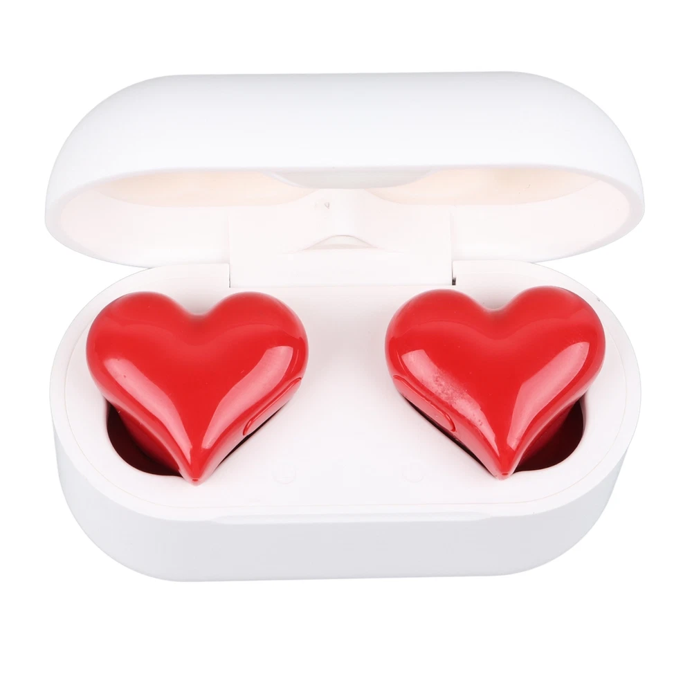 Features 1、WIRELESS BLUETOOTH CONNECTION: This wireless earbuds can be connected to cell phones, computers and other devices through Bluetooth technology without the use of wires. 2、SUPERIOR SOUND QUALITY: Bluetooth earbuds with HIFI surging bass, rich layers, so that the sound is more sensory, sound quality is pure and excellent, enjoy the feast of hearing. 3、HEART SHAPED DESIGN: These earbuds have a heart shaped design with a beautiful and lovely appearance, perfect for a present for women. 4、LIGHTWEIGHT AND PORTABLE: These headphones are very lightweight and can be easily carried in your pocket or bag, making it convenient to use them anytime and anywhere. 5、WITH EARPLUGS: Bluetooth earbuds come with 3 pairs of different sizes earbuds to meet your different needs. Specification Item Type: Wireless Earbuds Material: PC, ABS Size: Approx. 5.5x4x2.7cm / 2.2x1.6x1.1in Ships with Built In Battery Headset Battery Capacity: 40mAh Charging Compartment Battery Capacity: 230mAh Battery Type: Polymer Battery Package List 2 x Earphone 1 x Charging Compartment 6 x Earplug 1 x USB Cable 1 x English Manual