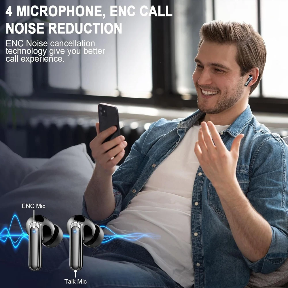 eBay Wireless Earbuds, Bluetooth 5.3 Headphones, Ear Buds Wireless Earbuds Bluetooth with 4 ENC Noise Cancelling Mic, 48H Playtime HD Stereo, LED Power Display, IP7 Waterproof Wireless Earphones, Jet Black Item Description Bluetooth 5.3 and One-Step Pairing: The Bluetooth earbuds utilize advanced Bluetooth 5.3 technology and support HID, HFP, A2DP and AVRCP Bluetooth protocols, allowing you to connect to multiple devices at the same time, with data transfer speeds up to 2x faster than the previous generation, dramatically reducing data latency and improving connection stability. The wireless earbuds also come with a capacitive touch interface and a full control suite that performs all functions with a single tap. LED Power Display and 48 Hours Playtime: The wireless ear buds provide 6-8 hours of music playback or 3-4 hours of talk time on a 1.5 hour charge, and when used with the charging case, provide up to 40 hours of total playback time for a full day of work and sports. The LED power display can track the remaining power of the charging case and the charging status of the earphones in real time. The Type-C charging port ensures a faster and more convenient charging experience. Premium Stereo Soundstage and Crystal Clear Calls: The wireless headphones are equipped with 13mm speakers that deliver powerful bass, ultra-clear vocals and stunning highs for a high-fidelity sound experience. The Bluetooth headphones have 4 built-in microphones with omni-directional sound capture and a signal-to-noise ratio of up to 57dB, which effectively reduces moderate wind noise while keeping the caller's voice clear, allowing you to enjoy high-quality calls. Ergonomic Design and Lightweight: To ensure a secure fit and long-lasting comfort, the noise cancelling earbuds comes with three different sized earbuds that fit 99% of the contours of the ear canal. These BK07 ear buds are lightweight, with individual earbuds weighing just 0.13 ounces, so you won't even feel them when you're wearing them and enjoy freedom of movement throughout the day. With dimensions of 58.7*47.7*26.6 mm, the charging case is small enough to fit directly into your pocket. IP7 Waterproof and Wide Compatibility: The Bluetooth earphones are equipped with nano-coating protection that not only prevents water and sweat from seeping in, but also prevents moisture in the air from damaging the components, thus extending their lifespan. The material of the case is smooth and easy to clean. In addition, the headphones can easily connect to almost any Bluetooth-enabled audio device, getting rid of the tangle of wired earbuds and enjoying unrestricted movement. › Bluetooth 5.3 technology extends transmission distance and reduces dropouts. Take out both earbuds and they will automatically power on and pair with each other. The wireless earbuds are equipped with 13mm speakers that deliver powerful bass, ultra-clear vocals and stunning highs for a high-fidelity sound experience. Payment We accept payment only through PAYPAL Shipping We ship products worldwide through standard express courier service, it will reach within 7 to 10 days to abroad buyers, we ship the product after recieved clear payment and give full information about shipment to the buyer Return We accept product return within 7 to 21 days from delivery date but product should be in original position and not in damaged condition,the return shipping charges will be buyer responsibility