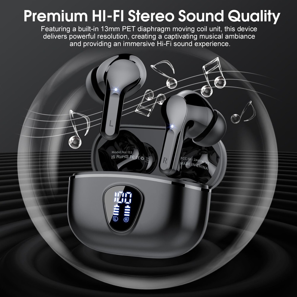 ear buds Wireless Earbuds earbuds headphones bluetooth earbuds bluetooth headphones wireless earphone wireless headphone ear buds wireless bluetooth earbuds wireless ear bud earbuds wireless bluetooth earbud wireless bluetooth ear bud headphones bluetooth earbud Fast and Stable Connection: With the new Bluetooth 5.4 technology, this wireless earbuds has a 30% faster transmission speed, more stable signal connection, no delay, whether you are in the gym, sports, running, yoga, you will not lose the signal or interrupt the music. Thanks to the magnetic Hall effect technology, after the first pairing, just take the Bluetooth earbuds out of the charging box to achieve an immediate connection, and the connection distance can reach up to 15m. Clear call experience: This noise cancelling earbuds uses advanced ENC call noise reduction technology to effectively filter out more than 80% of external noise, ensuring that the other party's voice remains clear during busy commuting, work or exercise, providing you with a high-quality call experience. The Headphones equipped with 4 high-performance microphones, it can accurately capture your voice, so that the other party can always hear clearly throughout the call even in a noisy environment. Immersive Stereo Sound: The ear buds wireless bluetooth earbuds adopt high-quality 14.2mm dynamic driver, which can provide amazing low-frequency depth, balanced mid-range and clear highs, and the lossless CD-level audio transmission makes every note and music detail come alive, significantly enhancing your listening experience, Our earphones allow you to enjoy your personal music moments whether you are indoors, outdoors, working or exercising. 48H long-lasting battery life & dual LED digital display: Up to 8 hours of music playback on a single charge (1.5h only) with the charging box, this in ear headphones offers up to 48H of battery life, ensuring you can use it for a long time without frequent charging.The LED display clearly shows the battery level of the earbuds wireless bluetooth and the charging box, ensuring you always know the remaining power and enjoy an uninterrupted music experience during a long journey or a busy workday. Ergonomic Design and IP7 Waterproof: The bluetooth earphones feature a curved design that fits snugly around the contours of your ears, paired with soft silicone ear bud (S/M/L) for secure and comfortable wearing while running or exercising. Each earbuds weighs only 3.7g, lightweight and burden-free, allowing for long-term wear without stress. With IP7-rated nano-coating technology, the wireless ear bud are effectively sweat-proof and rain-proof, making them ideal for running, cycling, fitness, and travel activities. Touch Control & Wide Compatibility: The I53 ear buds are equipped with high-precision touch sensors and support binaural touch control, providing convenient operations for volume control, previous/next song, pause and answer calls, and voice assistant control. Whether you are exercising, driving, or running, your hands can be completely freed. These bluetooth headphones are compatible with most Bluetooth-enabled devices, including iOS and Android smartphones, TVs, computers, and laptops.