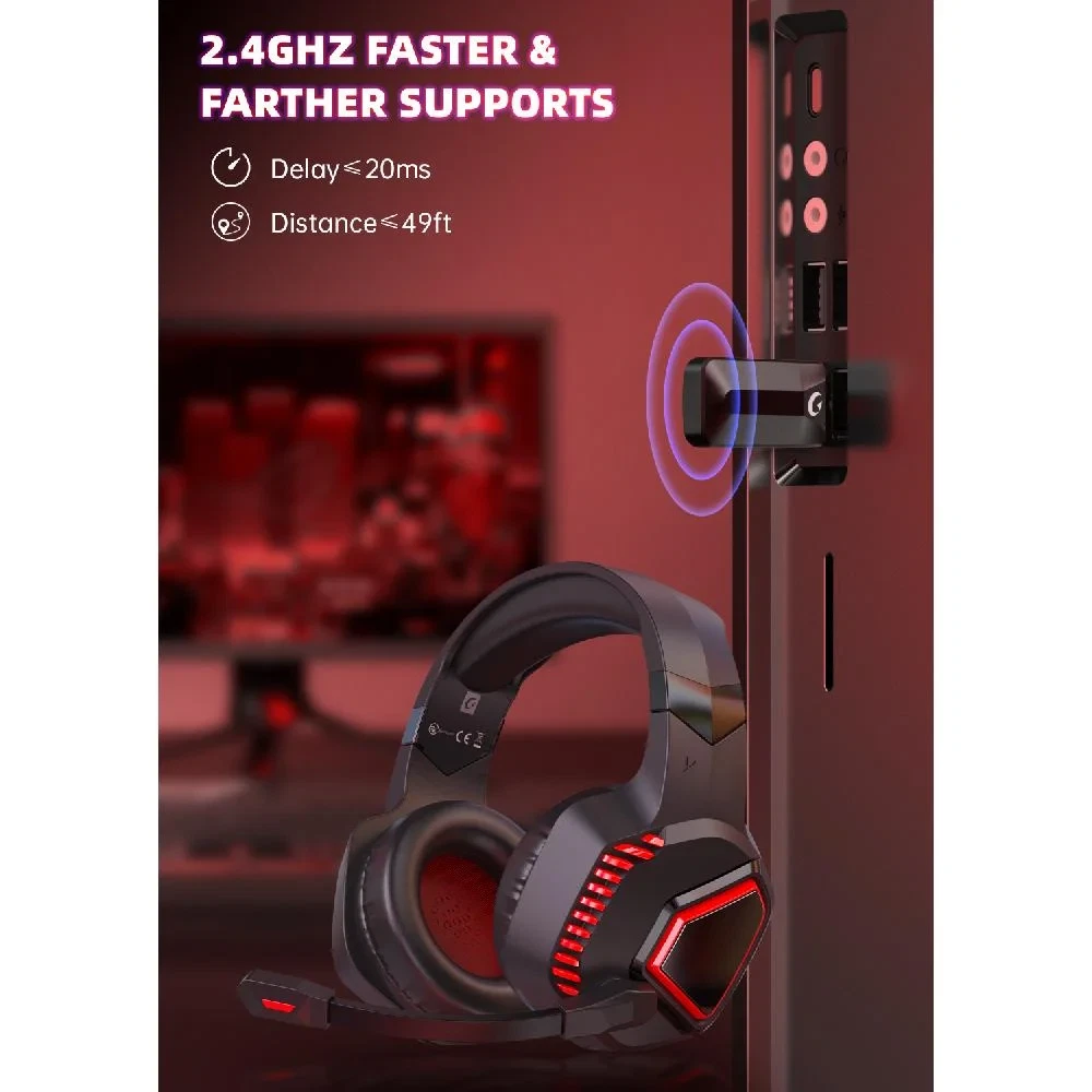 Ecomoment is professionally focusing on wireless gaming headsets & consumer electronic supplies. In the future, we will continuously develop and expand our product portfolio to inspire more and more gamer & audiophile to enjoy every brilliant moment in their lives. Why Choose Ecomoment Wireless Gaming Headset? Unique 3-in-1 Connection Ways: Supports low latency, lossless 2.4GHz USB dongle and the latest wireless Bluetooth 5.2 stable connection, while supporting 3.5mm wired connection mode. Multi-platform Compatibility: Widely compatible with PS5, PS4 controller, PC, Mac, phone, pad, Switch Computer Game PS5 Wireless Headsets; Xbox series only compatible with 3.5mm wired mode. Bluetooth connectivity for most of your mobile devices. (Please check the connectivity guide for compatibility on user manual). Omni-directional Noise-cancellation Microphone: Enables you to chat with your teammates with crystal clarity dialogue. Long-lasting Battery Life: Longer gaming time of 35-40Hrs. Full-recharge in just 3Hrs. What's Included in Box? 1 x Gaming Headset 1 x USB Transmitter 1 x Microphone 1 x 3.5mm Audio Cable 1 x Type-C Charging Cable 1 x User Manual Multi-platform Compatibility for PS4 controller,ps5, Mac, PC,Computer,Switch,PS4 PS5 wireless gaming headset,etc 3-in-1 Connection Ways Multi-platform Compatibility(ps5, Mac, PC,Computer,PS4 controller,Switch,PS4 PS5 wireless gaming headset,etc) 3-in-1 Connection Ways Stable Connection & Stereo Sound Omni-directional Noise-reduction Microphone Ergonomic Design & Long-lasting Battery Life As Gift for friends family Boys Girls, Christmas gift, New Year gift ?? wireless gaming headset combines high performance 2.4GHz lossless wireless technology for the accessible connection up to 49 feet in an unobstructed space. Lower latency (≤20ms) and featuring 50mm driver with 30% extra sound effect ensure that the wireless gaming headphones provide higher quality stereo sound, which makes you sense voice of directions, footsteps and every details clearly in games for a better immersive gaming experience. ?? wireless headset with microphone for pc combines , flexible, sensible and omni-directional microphone, providing high-end noise cancellation, which not only can be adjusted to the angles you want, also enables you to chat with your teammates with crystal clarity dialogue by this bluetooth gaming headset to coordinate with every scene of your game. ?? wireless pc headset supports low latency, lossless 2.4GHz USB dongle and the latest Bluetooth 5.2 stable connection, while supporting 3.5mm wired connection mode. Unique 3 in 1 connection design (equipped with both USB dongle and 3.5mm jack cable) make this gaming headset widely compatible with PS5, PS4 controller, PC, Mac, phone, pad, Switch(Invalid Microphone); Xbox series only compatible with 3.5mm wired mode. ?? Ecomoment wireless headset for switch design padded adjustable headbands not only good for reducing head pressure but also suitable for various head shapes. Ears are completely covered by PU earmuffs that isolate noises effectively and allow for long gaming sessions without fatigue. Audifonos gamer has a sustainable game time of 35-40Hrs. Full-recharge in just 3Hrs.