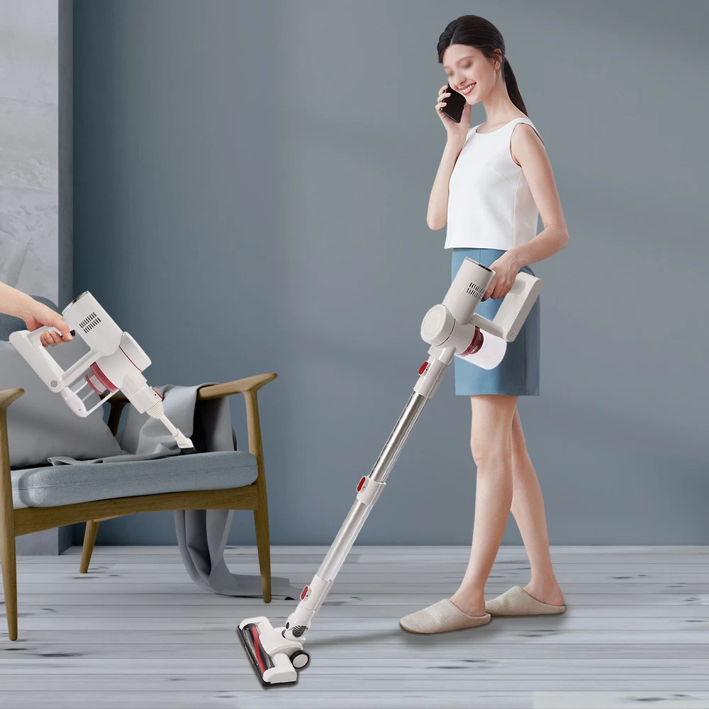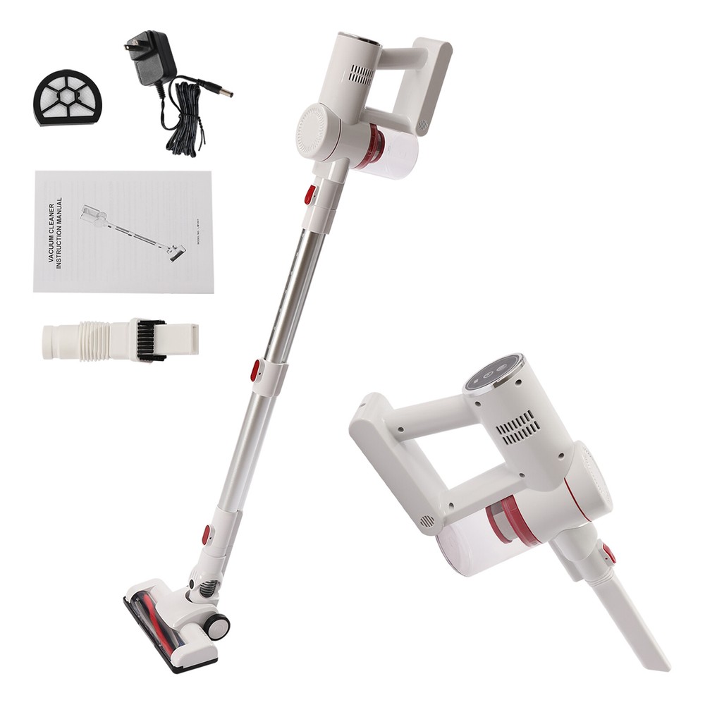 Wireless Handheld Vacuum for Hardwood Floor/Carpet Lightweight and Convenient Cordless Vacuum Cleaner, Wireless Vacuum, Handheld Vacuum for Hardwood Floor/Carpet/Pet Hair Description Bending down to do housework is very tiring and small corners are always difficult to clean. This cordless vacuum cleaner can ease your heavy housework. Made of two pure copper motors, it has high cleaning efficiency with low noise ( Max 68dB ). It has three lithium batteries and each one has a large capacity (2000mah), allowing it to continuously work for more than 15min or 30min under different modes. This cordless vacuum cleaner will be a good addition to your home. Key Features High-quality Material: This product is made of high-quality ABS, which is wear-resistant , waterproof , strong, durable, and not easy to deform. Powerful Suction: It uses two powerful motors and cyclonic duct design to provide strong suction power (9500PA) so that it can easily and quickly suck in fruit shells, paper dust, dust, etc, bringing you a new cleaning experience and saving you lots of time. Excellent Performance: This product uses two pure copper motors, which have strong power, high efficiency, high load capacity, and long-lasting range, providing you with excellent performance. With flexible 180°swivel sideways and 90°up and down, it glides under furniture and cabinets easily to eliminate dust and debris that is hard to reach. Also, it produces low noise (Max 68dB), providing you with a quiet environment. Multi-layer Filtration: Cyclone filtration at the air inlet filters airborne dust, then HEPA filtration and steel filter screen can block fine dust as small as 0.3 microns and lock it in the filter to avoid secondary pollution and ensure good air quality. Lightweight and Convenient: This product is designed to be wireless , which makes it easier for you to flexibly clean the corners in the living room, bedroom, and other places. The lightweight design ( 1.82kg/4.01lbs ) allows you to use it effortlessly with one hand. Women and the elderly will not feel fatigued after using it for a long time. Large Capacity: The dust collection cup has a large capacity of 0.8L/ 0.2gal to store dust, which can avoid air pollution and reduce the cleaning frequency of the machine. Meanwhile, the clear design allows you to view the dust volume for timely cleaning. Long Endurance: The three lithium batteries can support this product to work continuously for about 30min under strong mode and 15min under standard mode on a full charge. It can clean to a maximum area of 120㎡, which can avoid frequent charging to save you lots of time. Snap-on Design: The water tank adopts a snap-on design. After installing the water tank, the brush head can capture dust and hair as well as kitchen air-dried soy sauce and vinegar stains at the same time, avoiding the labor of kneeling to wipe, while reducing the long exposure to absorbing acid and alkali solvent rags to avoid skin aging, roughness, and other injuries to hands. Easy to Operate: The button on the top allows you to turn the machine on or off with just a touch, which is very convenient and quick. Flexible Movement: The two directional wheels at the bottom of the product can facilitate the movement of the product, which makes it easy to clean all corners of the room and can save you a lot of energy. Easy to Install: This product is simple in structure and complete in the package with a detailed instruction manual. You only need a few simple steps to install it, which is very time-saving and labor-saving. A Great Gift: The modern style and good practicality make it a great gift. You can present it to the elders to ease the housework. Protective Packaging: In order to prevent the product from being damaged and bumped during transportation, we fill the package with anti-collision protection foam to protect your products to the maximum extent possible. Guaranteed Customer Service: We are committed to providing quality products and services. If you have any questions, please feel free to contact us. We will reply as soon as possible and solve the problem. Details Ergonomic Handle: The handle is ergonomic and comfortable to hold, which can reduce the fatigue of your hands and arms, and provide you with a pleasant experience. Wall Bracket: It allows you to hang this product on the wall for easy storage. Heat Dissipation Holes: There are heat dissipation holes on the product, which can dissipate heat in time and prolong the service life of this product. Cleaning Brush: It has dense bristles and is suitable for cleaning irregular object surfaces such as curtains, keyboards, and chandeliers. Crevice Nozzle : It is suitable for window slots, sliding door slots, and other furniture with narrow edges and small corners. LED Headlights: It is equipped with LED headlights to easily track dust and debris in dark places. Application It is ideal for cleaning the home, garage, workshop, and vehicle projects. Specification Model: LM-001 Color: White, Silver Housing Material: ABS Style: Modern Plug Voltage: 110V Rated Voltage: 100-240V Power: 150W Number of Gears: 2 Vacuum Suction: 9500PA (Strong Gear), 5000PA(Standard Gear) Power Type: Plug-in, 3*2200mah Lithium Batteries(3.7V) Fully Charge Time: 4h Duration of Use On a Full Charge: 30min(Standard Gear), 15min(Strong Gear) Plug: American Standard Number of Wheels: 2 Wheel Type: Directional Wheel Number of Motors: 2 Motor Type: Pure Copper Motor Motor No-load Speed: 40000rpm Dust Collection Cup Capacity: 0.8L/0.2gal/27oz Brush Head Rotation Angle: Max 270° Rod Rotation Angle: Max 180° (Horizontal), Max 90° (Vertical) Noise: Max 68dB Maximum Clean Area: 120㎡/1291ft² Assembly Required: Yes Net Weight: 1.82kg/4.01lbs Gross Weight: 2.68kg/5.91lbs Package Size: 44.5*19*22.5cm/17.5*7.4*8.8inch Product Size(L*W): 23*8.5cm/9.05*3.35inch Height Range: 87-110cm/34.25-43.31inch Package Included 1* Machine Body 1* Telescopic Tube 1* Floor Brush 1* HEPA Filter 1* Crevice 