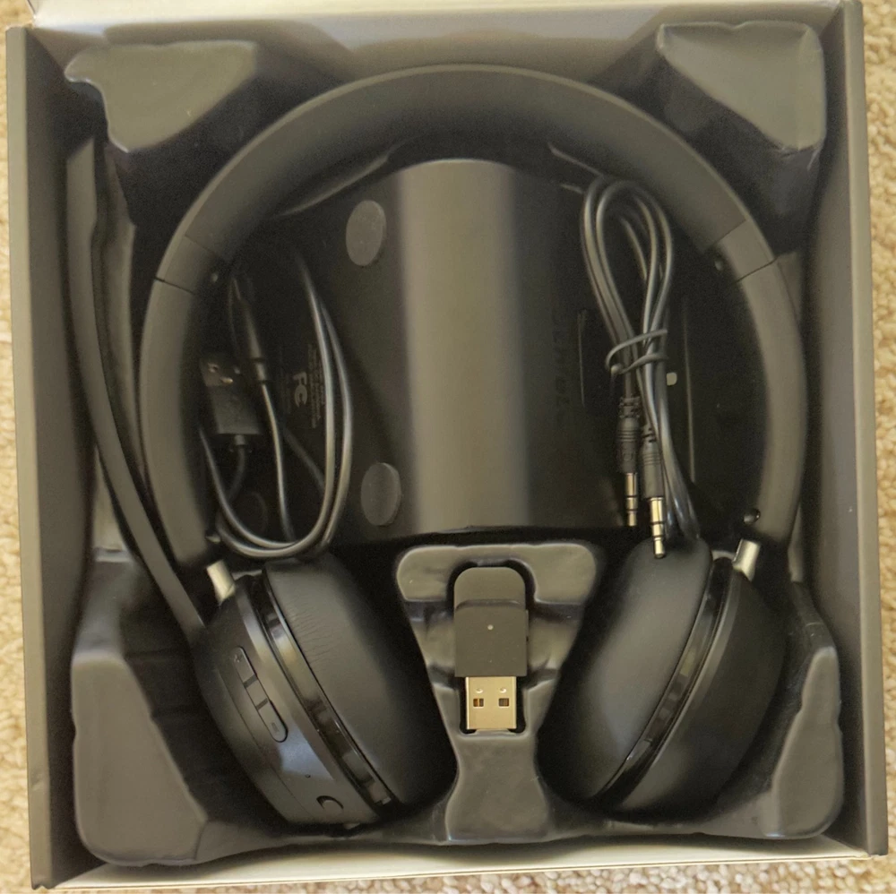 Wireless Headset, Bluetooth Headset with Noise Cancelling Microphone, Best Headphones with Mic Mute & USB Dongle for PC/Computer/Laptop/Cell Phones/Remote Work/Call Center. Note: Box has been opened and box shows some wear from storage (as seen in photos), but the item itself is never been used. Please check out my other listings, I list new items daily. Thank you!