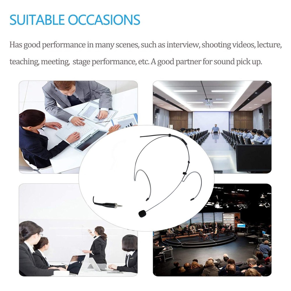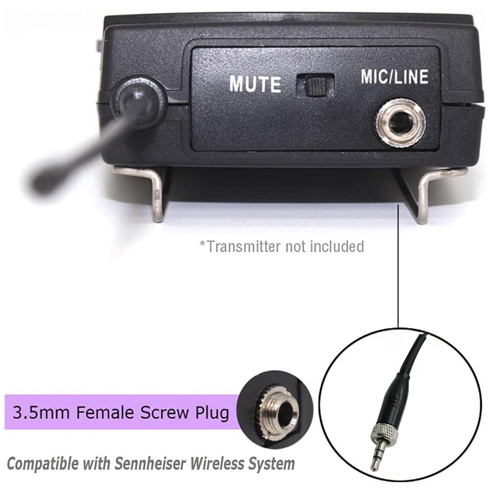 Product Description SHIP ALL ITEMS WITHIN 24 HOURS Welcome Retail, Wholesale & Drop-Shipping! Description: Premium Headset Microphone - Slim double earhook mic provides dependable, professional sound quality; comfortable & durable, perfect for all kinds of live performances & productions. Crystal-Clear Voice & Sound - Powerful, High sensitivity headworn microphone amplifies your voice, stable signal, zero delay & crisp, vibrant audio transmission for indoor & outdoor activities. Convenient & Lightweight Design - Beige over ear design, slim, cozy, in addition, this microphone features a supremely light-weight build. Compatibility - 3.9 feet (1.2meters) cable, 3.5mm stereo female screw lock plug compatible with Sennheiser EW100 EW300 EW500 SK100 SK300 SK500 EK100 EK300 EK500 EK2000 G1 G2 G3, EWD1, SK D1 / Line 6 X2 wireless microphone system with 3.5mm locking jack plug input ( NOTE : for Sennheiser only !!! other brands won’t work because the inside wiring may not the same,this is condenser microphone and need get power from the devices, Please make sure your device will supply power to the microphone). Widely Applications - Designed for use on stage, houses of worship, presenters, broadcasters, TV presenters, lecturers, musicians, actors, singers and any other applications requiring minimum microphone visibility with maximum comfortability and hands-free operation. Product Parameters Polar Pattern: Omnidirectional Capsule Diameter: Φ4.0*1.5mm Sensitivity: -45dB±3db SNR: ≥58dB Frequency Range: 100Hz - 20KHz Output Impedance: 1KΩ±30% Standard Operation Voltage: 2.0V-10V.DC Cable Length: 1.5 meters (49.24 inch) Package included : 1x Single Earhook Headset Microphone 1 x Windscreens ---------------------------------------------------------------------------------------------------------------- Con tact Us: Any que ries or issues incurred, please feel free to contact us via eBay message , we are always here ready for help. DO NOT open return request or leave negative feedback without asking for help. Highly appreciated your POSITIVE feedback & 5 star DSR. Enjoy shopping.