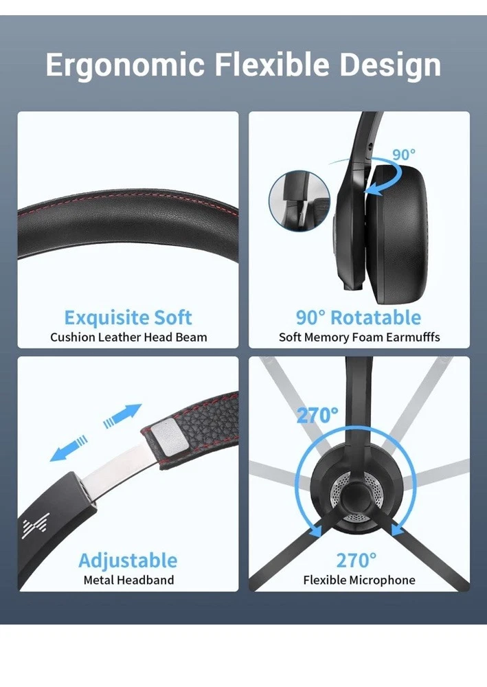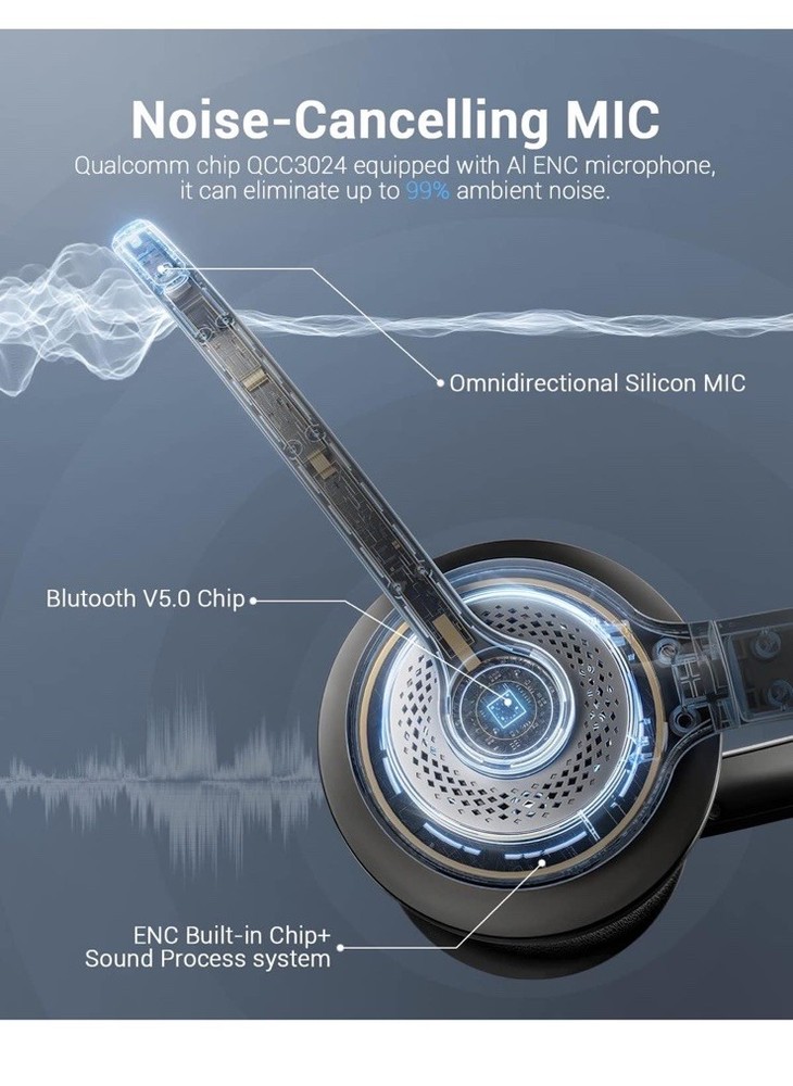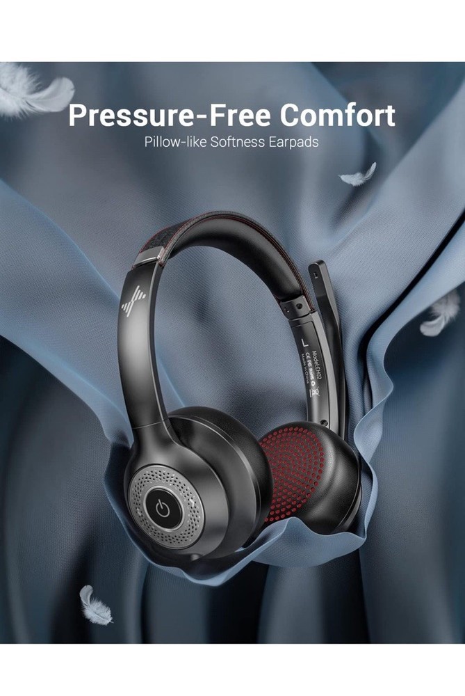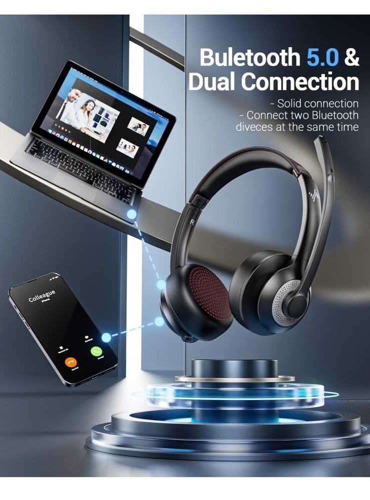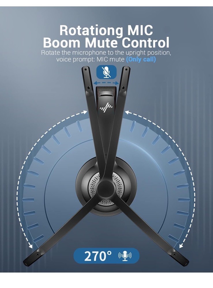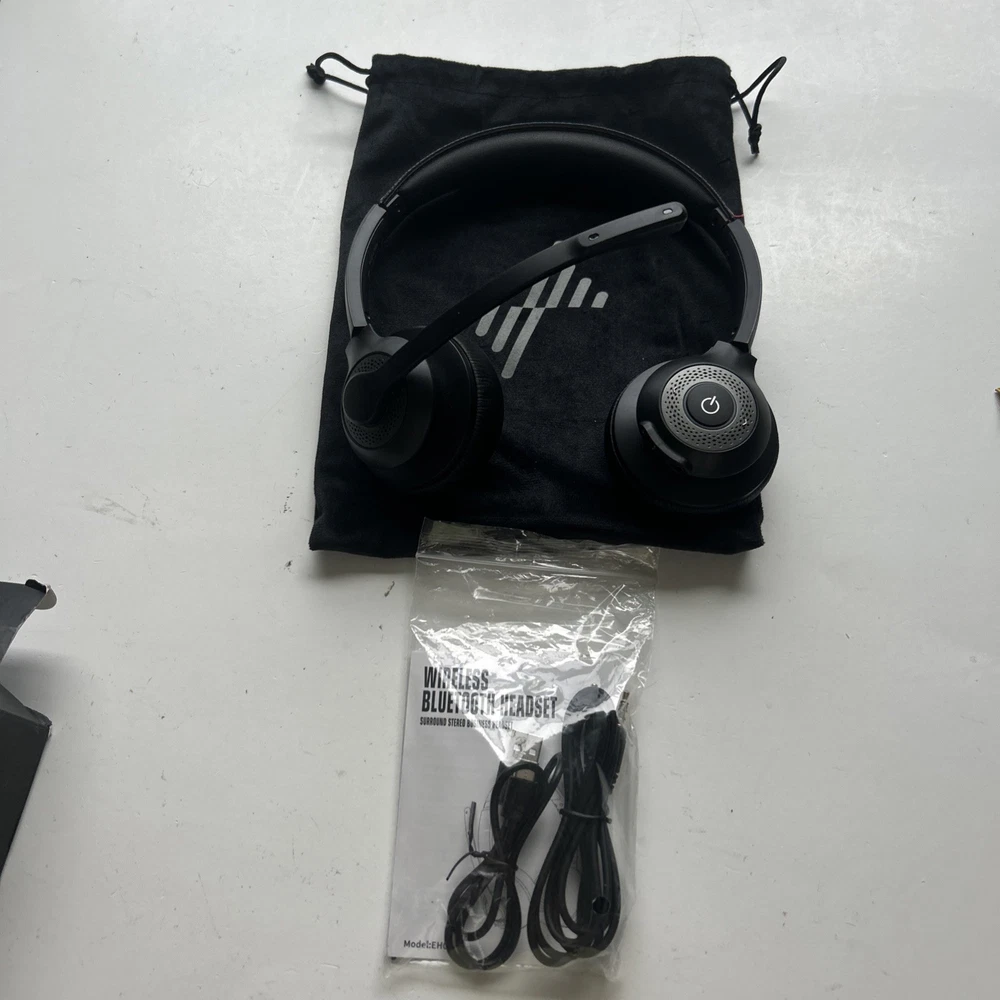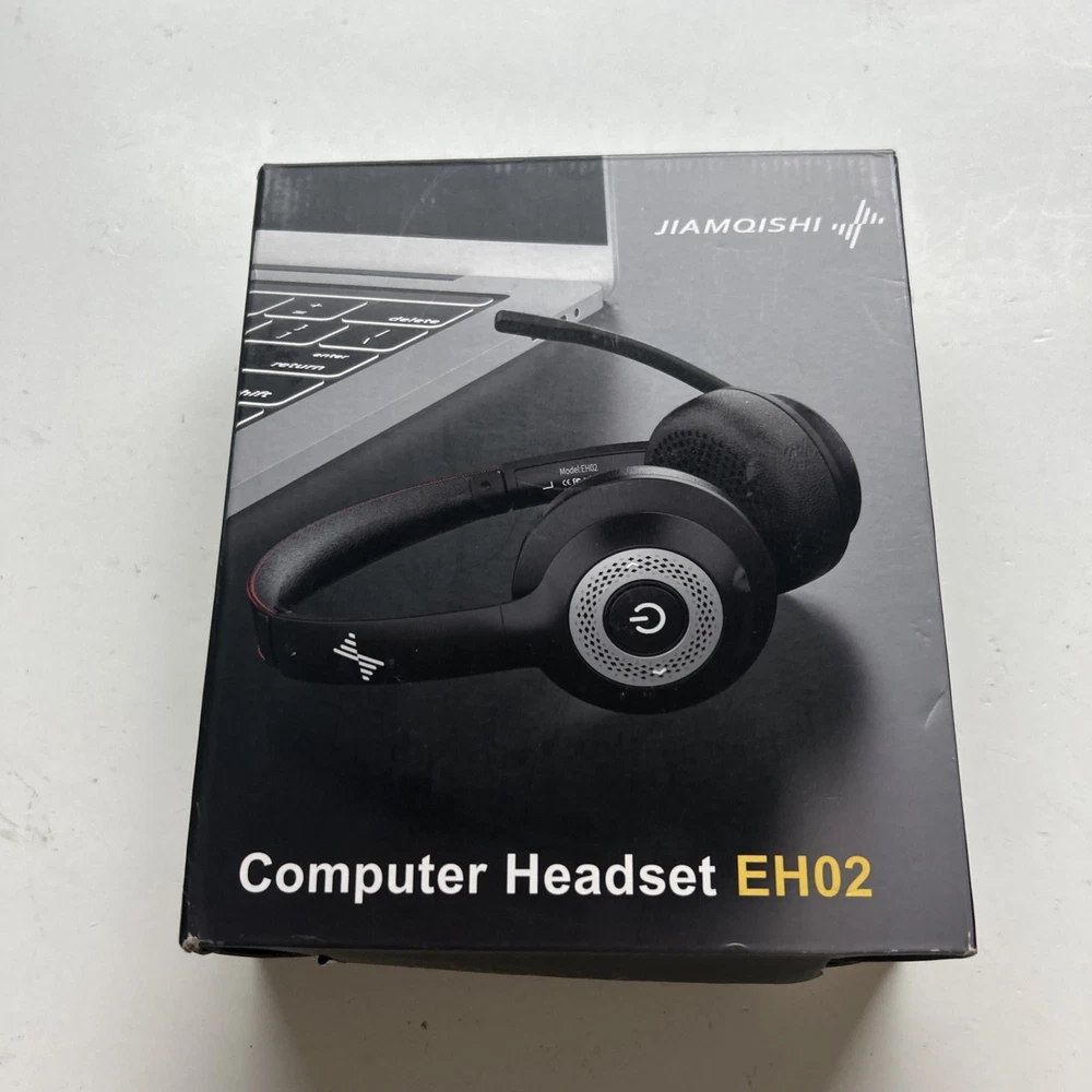 Open box New item! 【Qualcomm cvc8.0 Noise Cancelling Microphone】JIAMQISHI EH02 wireless headset for computer Qualcomm chip QCC3024 equipped with AI environmental noise cancelation microphone, it can eliminate up to 99.99% of the ambient noise. So you can hear and be heard clearly wherever you are. 【Bluetooth Headphones】On-ear headphones connect quickly to your phone or tablet via Bluetooth. Phone headset with built-in audio sound card,tested thousands of times for your daily conversation/music/movie/game by JIAMQISHI ,bringing you extra clarity and bass for a pleasant experience. 【Adjustable Headset】The padded headband of the wireless headset is adjustable and stretchable to fit your head perfectly, suitable for both children and adults. Soft protein memory foam ear cushions are made with premium breathable material, ROHS certified material prevents ear heat and sweat(The microphone return to home position can mute the function only applies to the call state). 【3.5mm Connectivity & Battery Power】Headphones are designed to work with a multipurpose 3.5mm audio cable (5+4ft) with mic mute and indicator/speaker mute. Compatible with tablet/Mac/iOS/Laptop/Android phone and other devices. The Bluetooth headset provides up to 14 hours of continuous talk and 200 hours of standby time on a single charge, plus 2 hours of work time with a 10-minute quick charge. Long battery life brings convenience to your life.