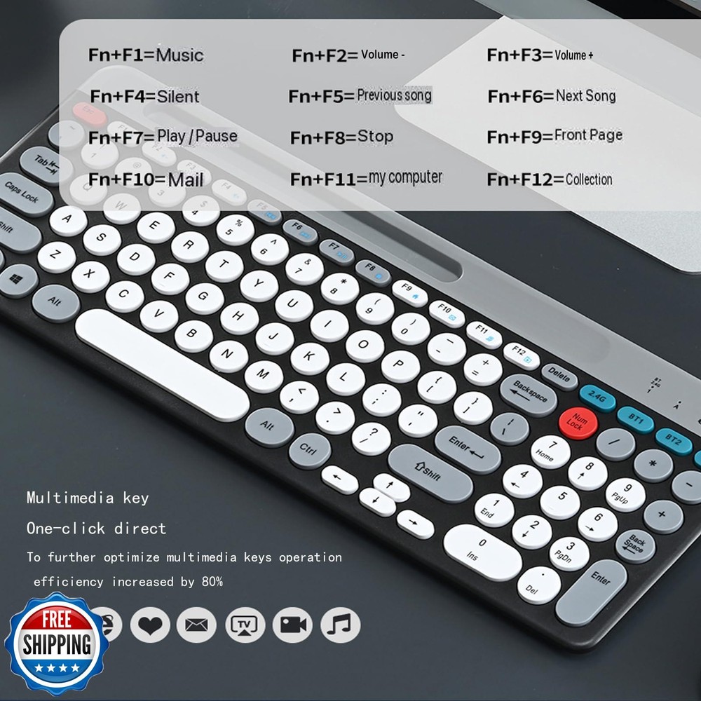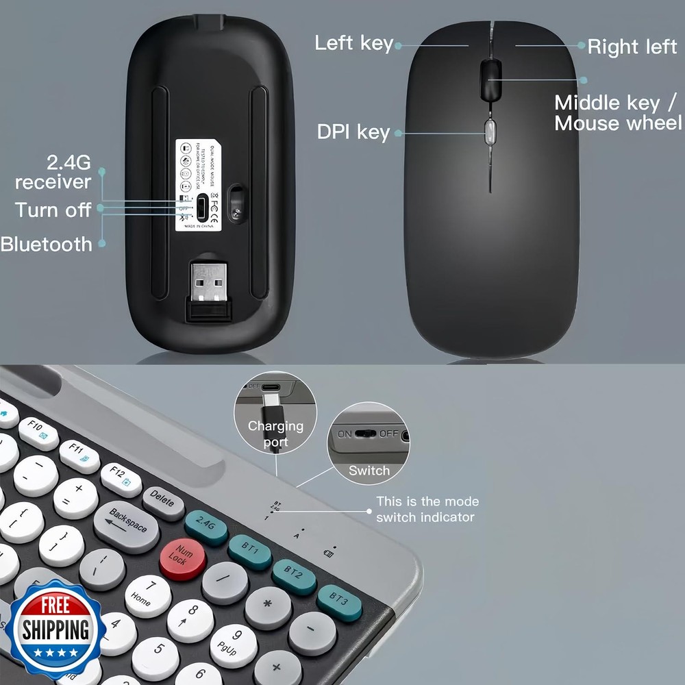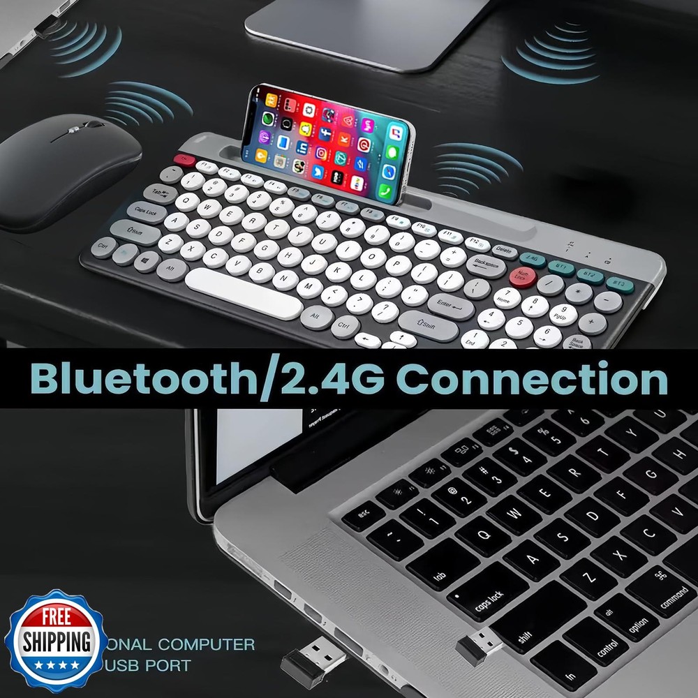 Wireless Keyboard and Mouse Combo with Phone Tablet Holder, Rechargeable Dual-Mode (Bluetooth 5.0 and 3.0 +2.4G) Multi-Device Silent Mouse for Windows, iPad, Tablet, MacOS,iOS,Android (White+Grey) Features 2.4G & Bluetooth 5.0 and 3.0 Keyboard and Mouse:multi-device wireless keyboard and mouse supports 3 devices to connect at the same time, (2.4G wireless + Bluetooth 5.0 + Bluetooth 3.0). Plug-and-play 2.4G receiver, no need to install additional software or drivers, You can type, switch and keep typing! Less noise,more focus:intimate mute button design,so that you do not disturb others when playing office and games;Low-profile keys offer quiet typing,Silent in a wireless USB mouse and keyboard. Phone Tablet Keyboard with Integrated Stand : Bluetooth phone keyboard includes feet will prevent your wrist from hurting while long sessions of typing,The sturdy built body will keep your devices stable;the system supports windows 7 and above,MAC OS,iOS ,Android or USB compatible devices; safety precaution:keep the equipment dry and away from precipitation,moisture,and all kinds of liquids and condensate,do not use this product with wet hands,do not use or store the device in dusty or dirty places,do not store the equipment in hot or cold conditions(this may be damage the equipment).do not drop,knock or shake the equipment(use may cause damage); FAQ: if the operation is fail,perform the following steps:1.check the connector integrity,2.check the connection to the device,3.check your device settings,4.check the battery level,5. disconnect and reconnect the device,restart the device if the problem persists,contact us directly,we will do our best to deal with it. Shipping Free & Fast Shipping: We offer free shipping to most of the USA with a normal delivery time of 3-7 days. However, due to the current situation, additional delivery time (up to 3 weeks) may be required for some items. Alternative Carriers: We may use alternative carriers (e.g., USPS, FedEx, UPS) to ensure your package arrives safely and on time. Due to the use of multiple carriers, we are unable to provide a tracking number automatically. Handling Time: Orders are processed and shipped within 1-2 business days of receiving cleared payment. Shipping Restrictions: Shipping to Alaska, Hawaii, Puerto Rico, Guam, and other US territories may incur shipping charges or delivery restrictions. Please contact us before ordering, or your order can be refunded/cancelled. State Restrictions: Certain items may not be shipped to California due to state regulations. Contact for Tracking Updates: If you require tracking updates or have any concerns about the delivery of your order, please feel free to contact us, and we will be happy to assist you. Return Policy 30-Day Hassle-Free Returns: If you are not completely satisfied with your purchase, you can return the item for free within 30 days of receiving it for a full refund or exchange. Easy Return Process: Contact us, and we will provide you with a prepaid return shipping label and detailed instructions. No Restocking Fee: There are no restocking fees for returns. However, the buyer is responsible for return shipping costs if the return is not due to a seller"s error. Refund Processing: Refunds will be processed within 1 business day of receiving the returned item in its original condition. Feedback Your feedback is extremely important to us. We strive to provide the best products and customer service possible. If you are satisfied with your purchase, please take a moment to leave us a positive review. If you have any concerns or issues with your order, please contact us before leaving negative feedback. We are committed to resolving any problems and ensuring your satisfaction. Contact Us If you have any questions or concerns, please feel free to reach out to our customer support team. You can contact us through the eBay messaging system. We are available Monday to Friday, 9:00 am to 5:00 pm EST, and we will do our best to respond to your inquiry within 24 hours. Thank you for supporting our small family business!