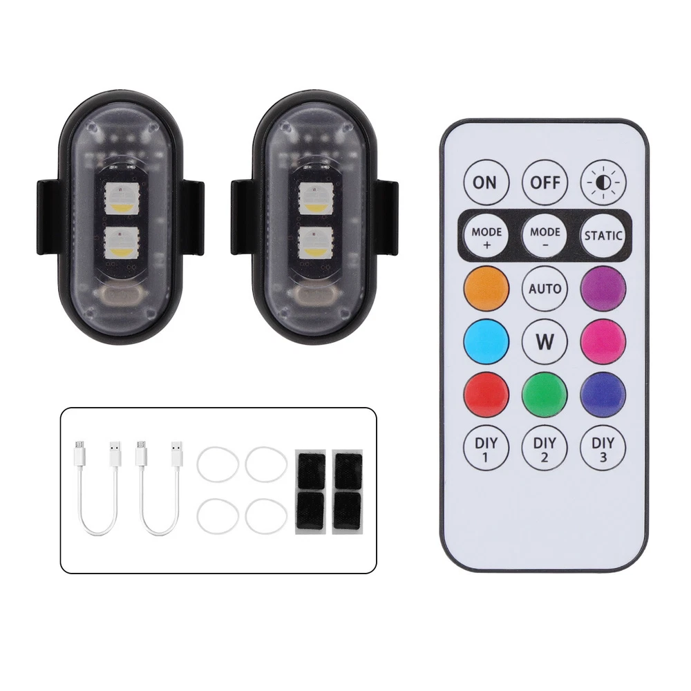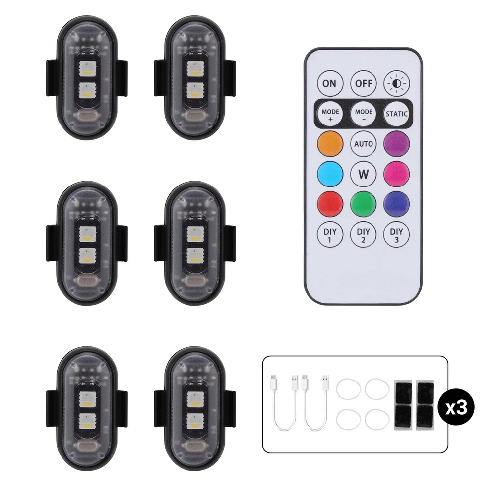 Wireless LED Strobe Light RGB 8 Colors Rechargeable Flashing Warning Lights Lot Features: 【8 kinds of lighting colors】 white, red, green, blue, yellow, purple, pink color,sky blue. Long (2 seconds) to the machine, short to adjust the mode. 【MultipleModes for your choose】 Seven-color fast flashing, seven-color slow flashing, seven-color mode, seven-color always-on, aviation mode, cycle mode, etc. Thirty modes with memory function. 【Using high-quality】 high-brightness multi-color wicks, high-brightness lamp beads enhance driving warnings, and are not afraid rear-end collisions 【High light lamp beads】better for warning function,super bright even at daytime. 【Widly applications】suitable for drones, traversing aircraft, fixed-wing, helicopters, motorcycles, etc. Sepcification: Size 4cm*2.5cm*1.5cm Net weight 7g Material: ABS Color: black+transparent Lamp bead model: 5050 Waterproof grade: IP65 Remote control distance: about 5m Charging interface: micro USB Number of light beads: 2pcs Input voltage: 5V Power: 5w Battery capacity: 110MAH Green light display when charging, off when full 8 lights: white, red, green, blue, yellow, purple, pink yellow, ice blue 10 modes: pilot flash, snap flash, airplane flash, the above 3 cycles, fast and slow flash, breathing flash, slow flash, pop flash, warning flash, always on Suitable for drone, traversing airplane, fixed wing, helicopter, motorcycle, etc. Bike light, brake light, drone light, license plate light, off-road light, tail light, turn signal light, underbody light, warning flash, wheel light (Note: airplane lights can't be used when charging) Package: Lamp*2 Charging Cable*2 Velcro*2 Rubber band *4 Remote Control*1 Delivery details Payment Terms of sales Feedback Contact us Delivery details 1. BUSINESS DAY MONDAY- FRIDAY FAST SHIPPING FROM USA. 2. All orders and payments received before 4PM EST (1PM PST) will be shipped the same business day. 3. No shipping on Saturday,Sunday or USA Public Holidays 4. No responsibility for any custom duty Payment We accept payment by PayPal only. Terms of sales 1. We offer a 60 day money back guarantee or exchange. 2. Buyer pays return shipping and we pay replacement shipping. 3. If you want to initiate a return,please contact us to get a returning address before sending the item back. Feedback 1. We strive to provide the best products and services. 2. Your positive feedback 5 stars DSR help us do better. 3. If anything about your transaction did not meet expectations, please CONTACT US and give us the opportunity to make things right. We are always here to help. Contact us Please do not hesitate to CONTACT US . You can message 24/7 on eBay for all questions and inquiries. We will get back to you within one business days at the latest from Monday- Friday.