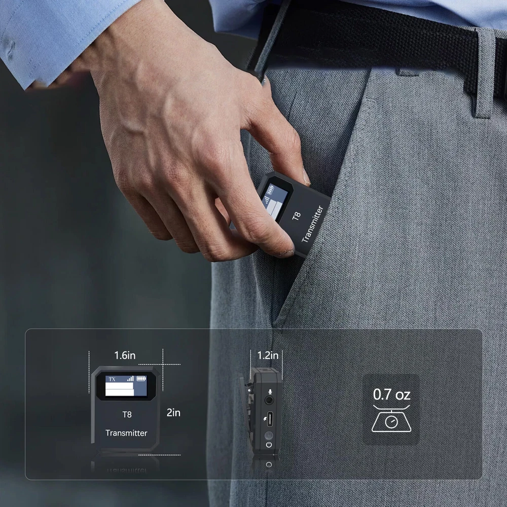 Description [Fearless 100ft Transmission Range]: State-of-the-art 2.4GHz technology provides a stable connection with high signal stability, low interference, and minimal audio delay. You can enjoy recording with a transmission range of up to 100ft in open, unobstructed environments, free from interference, and hassle-free with no cables. [One-Click Noise Reduction, 360° Sound Pickup]:This wireless mic has a built-in smart active noise canceling chip for clear recording in noisy environments.The audio algorithm intelligently captures the speaking voice for a clearer, more accurate, and more natural sound quality. [Internal and Lavalier Mic Versatility]:The T8 microphone provides the flexibility to use either the built-in microphone for convenience or connect an external Lavalier microphone for discreet and high-quality audio capture. Choose the best option to suit your specific recording needs. [Strong Compatibility, Connecting to All Your Devices]:The lapel microphone wireless works seamlessly with smartphones, cameras, tablets, computers, and PCs. (Note: The package includes a USB-C cable, a 3.5mm TRS-to-TRS cable, and a 3.5mm TRS-to-TRRS cable.) [Portable Mini Wireless Microphones]:The wireless lavalier microphone features a button-sized design that's ultra-lightweight and compact. Weighing only 20 grams (0.71 ounces), you won't even feel the wireless microphone when it's attached to your clothing. It's securely fastened, so you don't have to worry about it sagging due to its weight or slipping off when you walk. This wireless lapel microphone is easy to carry and compact, which brings great convenience for outdoor recording work. Ideal for filmmakers, interviews, video blogs and podcasts. Friendly Tips: 1.Due to the light and screen difference, the item's color maybe slightly different from the pictures. Please understand. 2.Please allow 1-2cm differences because of the manual measurement. Payment 1. We only accept payment through Payoneer. 2. Please make sure you have a valid account prior bidding. 3. Please pay for your item within 7 days after you order. Shipping 1. Buyer take responsibility in import / tax cost (not included in item price) 2. Pls contact with us to confirm extra cost if you need to upgrade the shipping option 3. If there's any concern about shipping, pls contact with us for further confirmation Return Policy 1. Refund or Replacement request is available within 30 days after parcel received and returning the item as the same condition as received. Please contact us to request a return authorization. Your name, auction number, and reason for return should be included in the message. 2. All items returned must contain all original packaging materials. Please repack the item carefully. Items returned will be tested and a new replacement will be shipping to buyer punctually. 3. In the event that a suitable replacement is not available then a refund will be issued. Shipping, handling and insurance fees are non-refundable. 4.If the item was found non-defective, the item will be sent back to buyer at buyer's expense. Items returned without authorization will be refused and returned to sender/buyer. 5. Buyer pay the shipping cost if the item damaged artificially, or buyer say "not like it", "size/color was different per they imaginary", etc. Contact us Please contact us via ebay message any time, all questions will be replied within 12 working hours. Customer Support Online : 9:00am - 22:00pm (GMT +8) Everyday