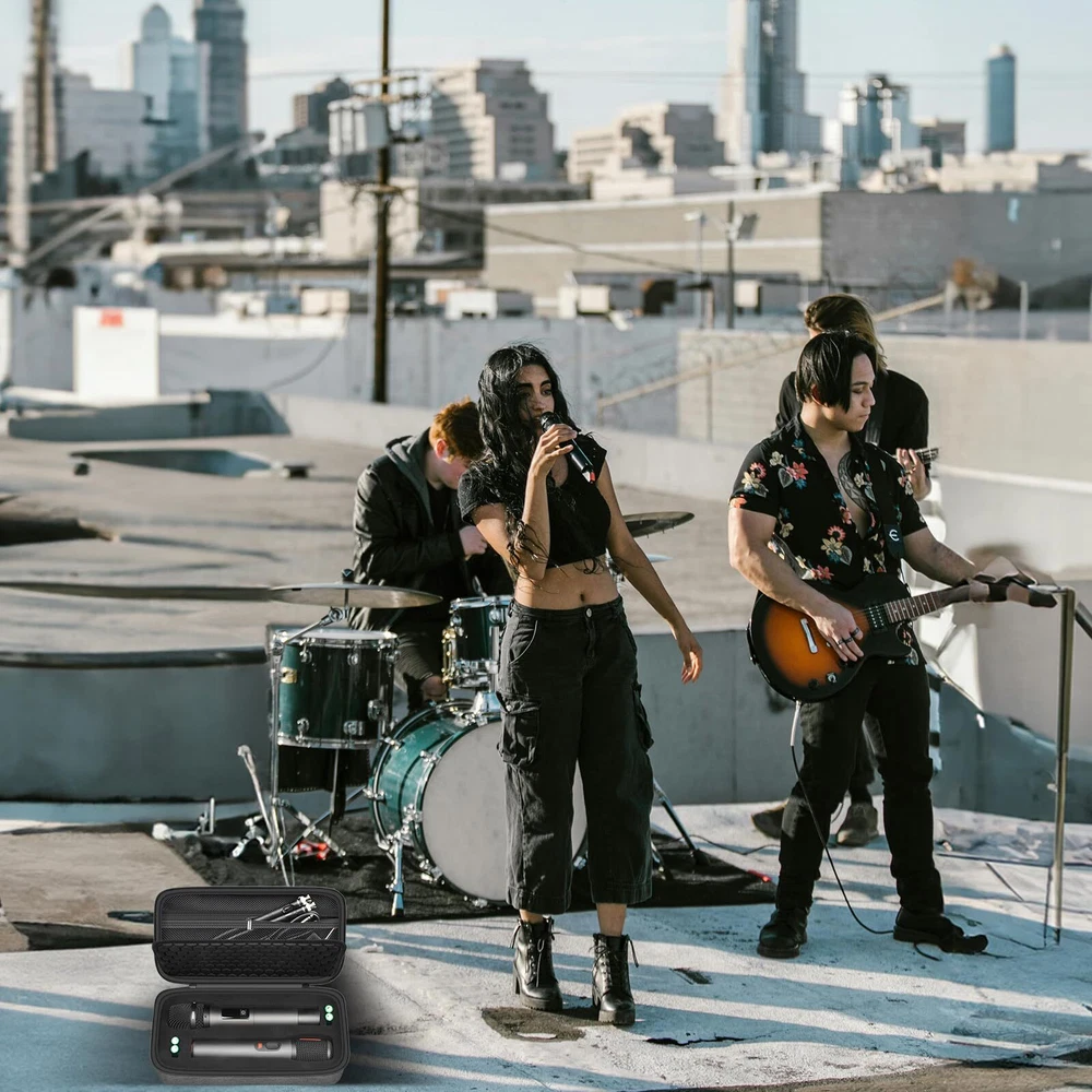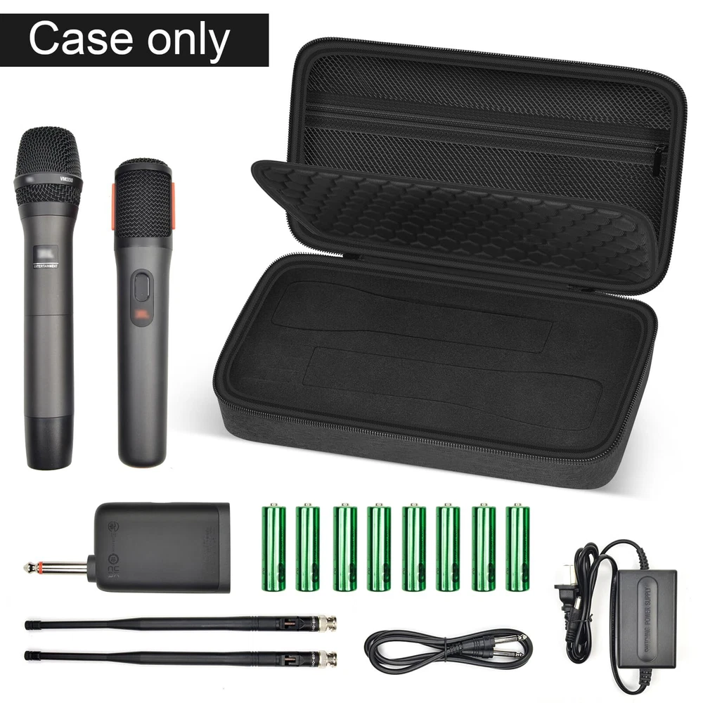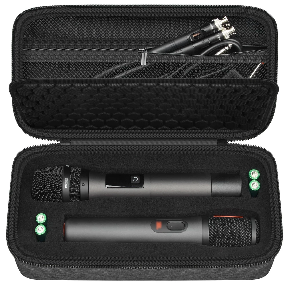 1.Case for karaoke machine for 2 microphones and easy to use: Good quality andstrongzippers ensure that for JBL Mics storage bag is not easily damaged during long-term use and is easy to use. 2.Bluetooth mic bag with fashionable exterior design: Simple business design enhances users' professional image in various occasions. 3.Karaoke storage easy to maintain: The surface material is easy to clean and can quickly remove dust and stains, keeping microphone for speaker and storage bag clean. 4.Singing wireless Microphone stand bag provide professional level protection: using high-strength materials to ensure that portable wireless microphone is not damaged during transportation and storage. 5.Bluetooth speaker party box with multi functional layers: The internal multifunctional compartment design facilitates users to organize and store wireless 2 microphone system with dual-channel receiver and their accessories Wireless two microphone system carrying case: DIY foam design fits for different size less than 10.5 inches microphones and dual-channel receivers, metal receiver, fits for JBL for TONOR for Phenyx Pro for Singing for Bietrun for ALPOWL for MOYLEAF for DFTRT for Fifine for HUACAM microphones. External size:12*6.2*3 inches(For sale is case only no device included) Large Capacity 2 Karaoke Microphone Wireless Holder: The box for microphone for singing deisgn with insert foam can hold 2 handheld microphone wireless, batteries, you can remove the foam according to the size of the microphone and accessories to make it match perfectly, The maximum size can hold 10.5 inches Premium material wireless microphone system storage box: karaoke microphone case made of hard material keep mic system shockproof .Foam lining and soft honeycomb layers effectively protect for cordless microphone from daily bumps, damages, and scratches Wireless microphone system bag with accessories mesh pocket:Wireless microphone carrying case meets the quantity configuration requirements for most wireless microphones for karaoke. With a spacious zippered mesh pocket for UHF receiver, batteries, data cables, and other microphone accessories, ensuring you have all the necessary machine parts Dual Microphones Carring Bag:Microphone cover case offer smooth zippers and a sturdy carrying handle, ensuring your singing microphones are easily accessible and well-protected.Whether it's a family gathering, a friend's party, or a professional performance, karaoke system case meets your needs