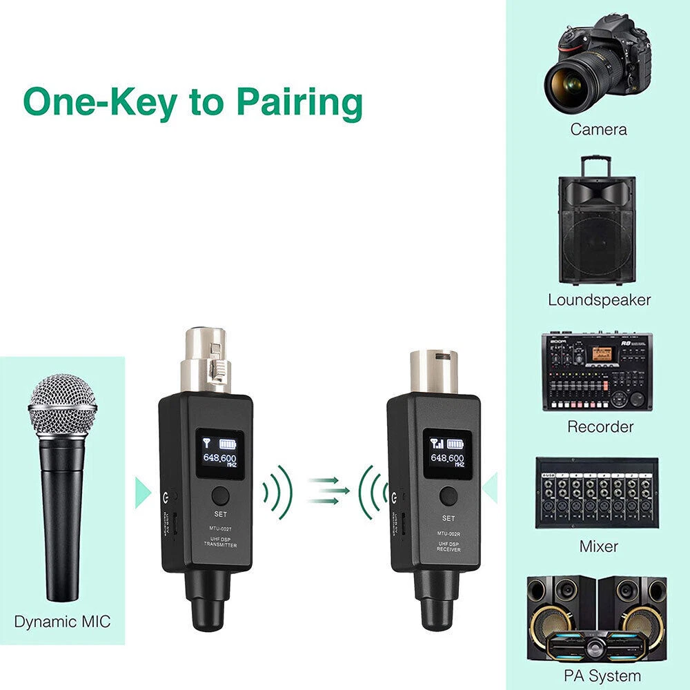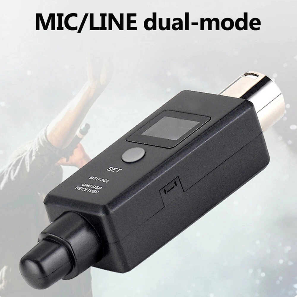 Features: The frequency, battery indicator, and signal strength bar are clearly and intuitively displayed on the LED screen. Built in dual antenna that resist to WiFi and electromagnetic wave, etc., features of anti-jamming and has longer transmission distance(30m). 24-bit/48kpbs high resolution, with Mic/Line two modes to switch from. Strong, stable and fast receiving signal. Small wireless transmitter system, lithium battery inbuilt, plug and play, easy to operate. Support with dynamic microphone and condenser microphone with built-in power supply. Equipped with XLR female to 6.35mm male microphone adapter, compatible with audio mixer, recorder, speaker, PA system, amplifier, etc. Provide stable and reliable wireless transmission. Specifications: Material: ABS Number of Channels: 6 Transmission Distance: About 30 meters Duration: Stable 6 hours Power Supply: Built in USB charging Delay: About 5ms Sound Dynamic: 110dB Sampling Rate: No 24bit / 48 kpbs audio Frequency Response Range: 20Hz-20kHz Antenna Impedance: 50Ω SNR: 110dB Battery: 3.7V 400mAh Li-ion battery Support Microphone Types: Dynamic microphone and condenser microphone with built-in power supply Item Size: 70 * 30 * 30mm / 2.76 * 1.18 * 1.18in Item Weight: 200g / 7.05oz Package Weight: 300g / 10.58oz Package Size: 16.5 * 13.5 * 5.5cm / 6.50 * 5.31 * 2.17in Packing List: 1 * Transmitter 1 * Receiver 2 * Transfer Plug 2 * Cable 1 * Manual (English) Wish you an enjoyable shopping!