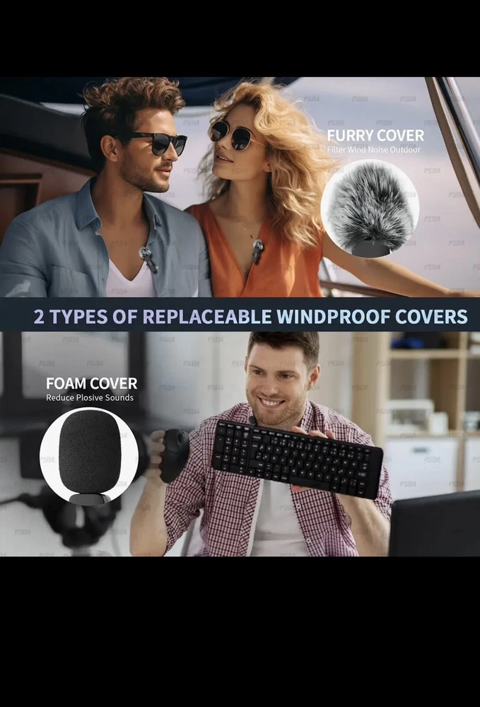 This wireless microphone is perfect for live performances, podcasts, and online meetings. It is a 3in1 model that is compatible with iPhone, USB, and 3.5mm jack. The microphone is designed to clip onto the lapel of your clothing, making it hands-free and easy to use. It features a plug-and-play function, making it easy to connect to your device without the need for complicated setup. The microphone also has an on/off switch, allowing you to control when you want to be heard. It is suitable for both Android and Apple devices, and it comes in a sleek black color.