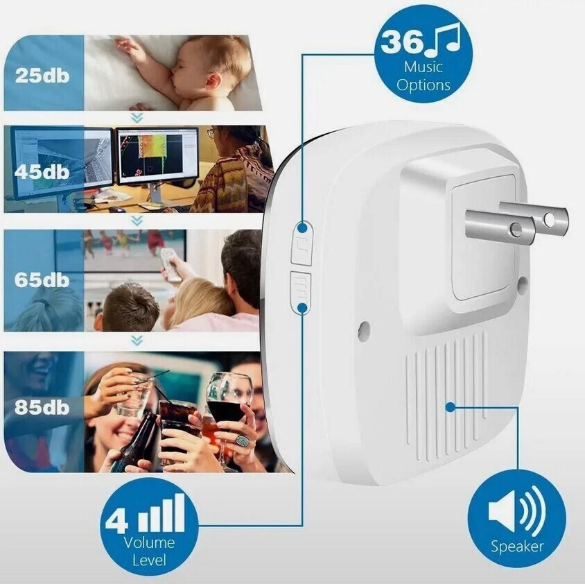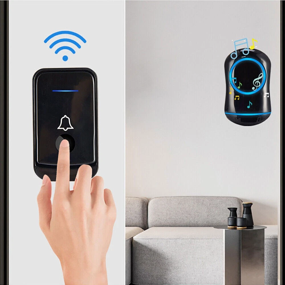 #A 1/2x Receivers+1x Transmitter Features: 【Personalize】:All receivers will ring no matter which push button is pressed, but each door has a different tone, so you know where your guests are. If you want the push button and receiver to work one-to-one, please try the steps in "How to clear the frequency and re-pair". 【Longer Range】:Up to 1000 Feet (300m) in the open air from the transmitter (150m if there are walls). Either you are occupied in the bedroom or at the kitchen, our wireless doorbell kit can remind you that someone is calling from outside. Never worry about missing visitors. 【60 Melodies & 5 Levels Volume & LED Flash】:The wireless doorbell offers a wide selection of 60 tunes for your choice. 5-level of volume range from 0dB to 110dB, silent mode with just LED flash is available when you don't want to be disturbed. 【IP44 waterproof】:The doorbell push button is rated IP44 and weatherproof for outdoor use,the doorbell chime is suitable for any home, townhouse, apartment, office, school, hospital, hotel or other application. Our wireless doorbell is certified by CE, RoHs, FCC. 【Expandable and Easy Installation】:Expand your existing doorbell system with up to 8 transmitters and unlimited receivers. Simply plug the main doorbell chime into a wall outlet, install the push button with provided double sided tape or screws. Specification: Maximum 1000ft operating range in open area 38 unique ringtones 3 volume levels LED indicators Volume range: 25 to 80dB Dimension: Receiver: 2.56 x 3.74 x 0.94 inch; Transmitter: 2.01 x 2.95 x 0.79 inch; Package Includes: 1-2x Receivers(please choose the qty you need) 1x Transmitter Tapes / Screws / Stickers #B 1/2x Receivers+1x Transmitter Feature: 300m/1000ft Operating Range With this wireless doorbell operating range up to 300m/1000ft, no matter where you are, you will never miss the visitor. You can smartly add up to 20 same plug-in doorbell receivers and doorbell battery-operated transmitters. Blue LED Indicator When pressing the wireless doorbell battery-operated transmitter, the blue indicator light on the wireless doorbell with 1/2 receivers will flash to remind you of the visitor's arrival. At the same time, the indicator light on the transmitter will remind visitors that the doorbell's receiver has sounded. IP44 Dustproof & Waterproof IP44 doorbell transmitter with a special dustproof & waterproof structure could work between -4 °F to 159 °F, can withstand extreme weather conditions. Enjoy the freedom to install it indoors, outdoor door frames, or in your garden. Innovative Memory Function With a smart storage function, this doorbell's wireless cordless plug-in receiver can remember your last tune and volume even if a power outage, no need to set it again every time. 10 Years Press Life After smart testing, the doorbell plug-in wireless transmitter can be pressed 100,000 times. It needs to be pressed 25 times a day for normal household use and 91250 times a year, so it can be used for 10 years. Easy to Install 1. Adhesive Patch Mounting: Use the included double-sided adhesive to stick the doorbell wireless cordless button on the wall. 2. Screw Mounting: There is a screw groove on the back cover of the doorbell battery-operated button, you can use the attached screws to fix it on the wall. Widely Use The plug-in door chime and cordless doorbell button are very popular because of their easy-to-install and set up function. You could install it anywhere inside, house, garden, garage, office, etc. Warm Tips: 1. Please tear off the battery insulation film before use. 2. Do not stick the doorbell wireless transmitter on the metal door frame or metal object. Pacakge Includes: Option 1: 1*Transmitter (includes 1*23A,12V battery) 2*Receiver Option 2 : 1*Transmitter (includes 1*23A, 12V battery) 1*Receiver #C 1/2x Receivers+1x Transmitter Feature: Classic Wireless Doorbell - Stylish modern design, artful with simplicity, elegant and unique. Excellent materials keeps itself from getting higher temperature & interference. Waterproof & Dustproof, remote transmitter button is rated IP44 weatherproof. Works between -4 °F to 140 °F; withstands various harsh weather conditions, acceptable for outdoor use. Long Operating Range - Operating range up to 1,000ft/300m in open area ensures you to hear the bell and answer the door in time. Either you are occupied a few rooms away or on another floor, in the garden or kitchen, you will always be easily informed when someone is calling from outside, nsures you will never miss a visitor. 36 Melodies & Adjustable Volume - The wireless doorbell offers a wide selection of 36 chimes for your personal taste, you can have a Christmas doorbell during the christmas season, for example, and more. 4-level of volume range from 25dB to 110dB to meet your needs for different occasions. Flashing light with audio alert indicators which is easy for people including the hearing impaired to notice. Easy Installation & Using - Screws and double-sided adhesive tapes included for easy be fixed to the doorframe of the transmitter. Easily plug receiver into an electrical outlet (no batteries required for main receiver). Install just plug it in location you need it to be heard, then you put the button where you want someone to push the button. Remembers your last melody and volume level after a power outage; no need to reset to your previous settings. Multi Use - It is fit for home, apartment, classroom, office, villas and more. You can use our doorbells to train dogs, using it to quiet down classrooms, when you ring the bell, the students will know it’s time to move on to the next group, the kids are loving it also. And it can be a paging device for the elderly, can signal for care when they need it most. Specifications: Plugs into Any Standard Wall Outlet. Flashing Light Indicator. Wireless Range: 1000ft maximum in the open air Internal Sounds: 36 Chimes Volume: 4 level adjustable levels (25db to 85db) Receiver Powe