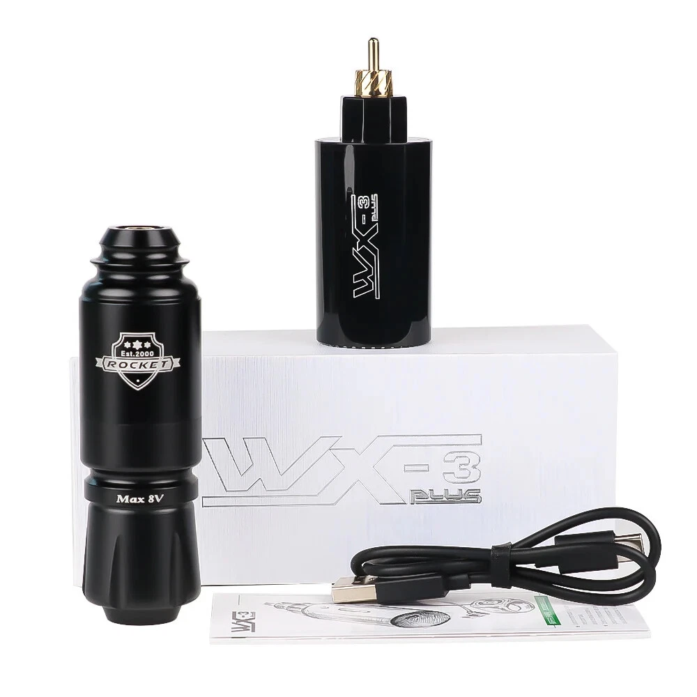Tattoo Machine Details: 100% brand new and high quality Body: space aluminum Motor: Import Motor Weight: about 146g Stroke: 3.5mm Rpm Range Stitches: 10000rpm/min Colors : Black Tattoo Power Supply: Product Type: Wireless Tattoo Power Supply Power Input Voltage: DC 5V Output Voltage: 4.2-12V Interface Type: DC / RCA Battery Type: Li-ion battery Battery Capacity: 1500mAh Charging Time: 4 hours (charger is different, charging time is different) Working Time: 8 hours for normal use Net Weight: 61.5g Size: 32*84mm
