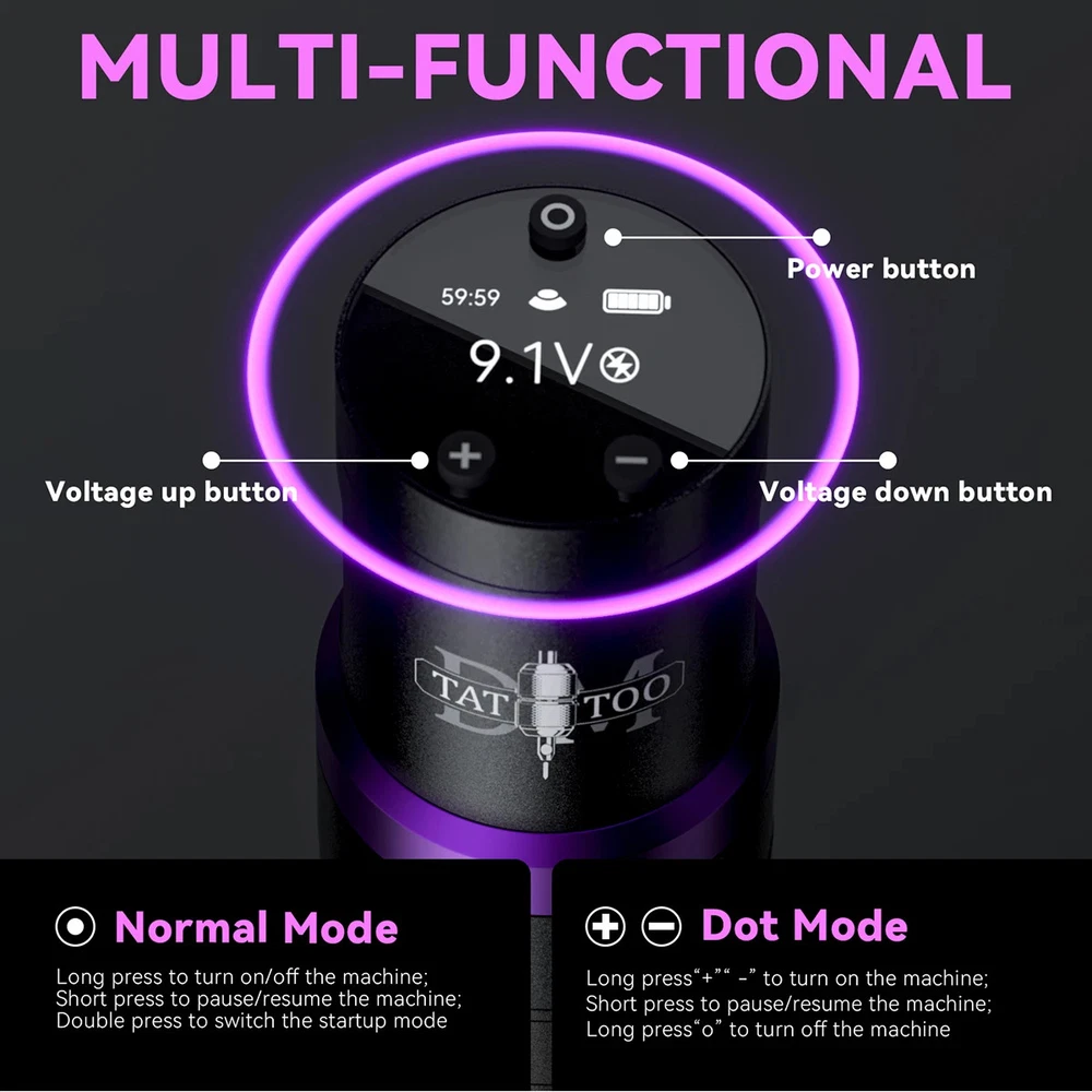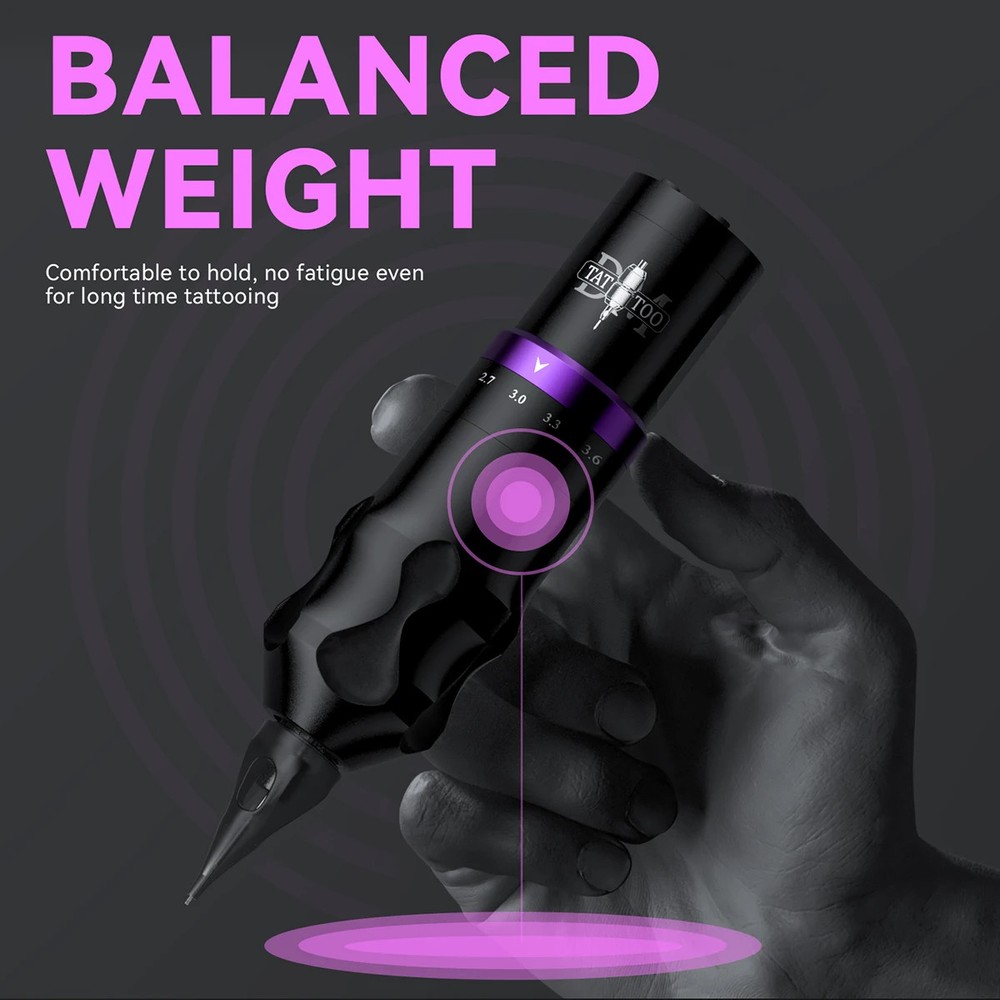 Product Parameters: Product Name: Gorilla Adjustable Stroke Tattoo Machine Motor:Powerful Customized Motor Motor Speed:8V-9000RPM Adjustable Stroke:2.4mm, 2.7mm, 3.0mm, 3.3mm,3.6mm,3.9mm,4.2mm Voltage:4-12V Battery Capacity:1500mAh Battery Life:About 5-6Hours Charging interface: Type-C Usage:Battery Battery start modes:Jump Start / Stable Start Dual working mode:Normal mode / Dot mode Size:122*37.8mm Weight:217g Battery Instructions: - “O” key : Long press to turn on/off the machine;Short press to pause/resume the machine;Double press to switch the startup mode - “+” “-” key :Long press "+ -" together to switch dot mode The Package Includes: 1 PC Gorilla tattoo machine(2.4-4.2mm stroke) 1 PC Charging cable 1 PC Black packaging box CPK098 Tattoo Pen Kit Accessories List: 1、DM Gorilla Wireless Adjustable Stroke Tattoo Machine Pen 1pcs 2、Wireless Tattoo Machine Charging Cable 1pcs 3、DM Safety Tattoo Cartridge Needles Mixed 20pcs 4、Silicone Tattoo Practice Skin 1pcs 5、Tattoo Transfer Paper 4pcs 6、Black Disposable Gloves 1pair 7、Small Tattoo Ink Caps with Base 20pcs 8、Medium Tattoo Ink Caps with Base 20pcs 9、Black 2.5cm Self-adhesive Bandage 1pcs 10、Tattoo Template 2pcs 11、Tattoo Table Covers Clean Pad 3pcs 12、Tattoo Machine Pen Kit Manual 1pcs 13、Exquisite Black Tattoo Case 1pcs CPK099 Tattoo Pen Kit Accessories List: 1、DM Gorilla Wireless Adjustable Stroke Tattoo Machine Pen 1pcs 2、Wireless Tattoo Machine Charging Cable 1pcs 3、DM Safety Tattoo Cartridge Needles Mixed 20pcs 4、Silicone Tattoo Practice Skin 1pcs 5、Tattoo Transfer Paper 4pcs 6、Black Disposable Gloves 1pair 7、Small Tattoo Ink Caps with Base 20pcs 8、Medium Tattoo Ink Caps with Base 20pcs 9、Black 2.5cm Self-adhesive Bandage 1pcs 10、Tattoo Template 2pcs 11、Tattoo Table Covers Clean Pad 3pcs 12、DM 5ML Tattoo Inks 10pcs 13、DM 30ML Black Tattoo Ink 1pcs 14、Tattoo Machine Pen Kit Manual 1pcs 15、Exquisite Black Tattoo Case 1pcs