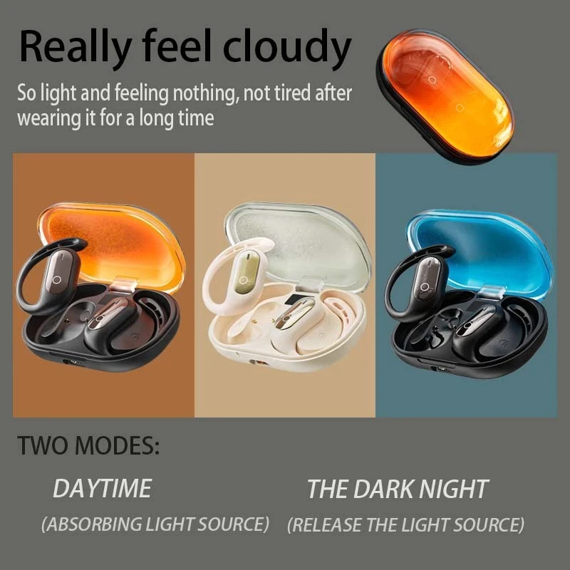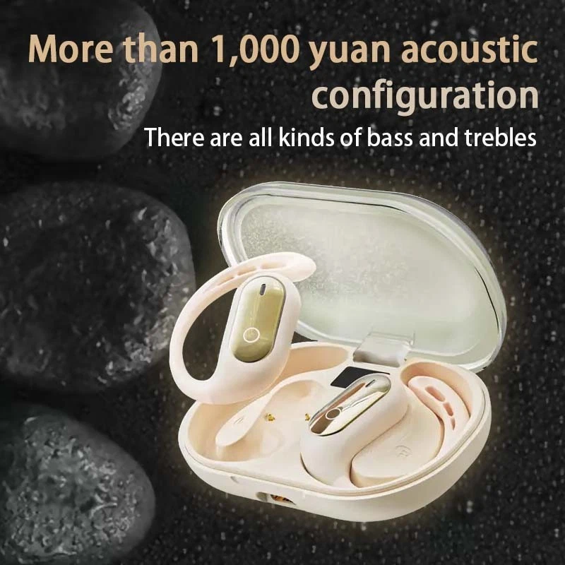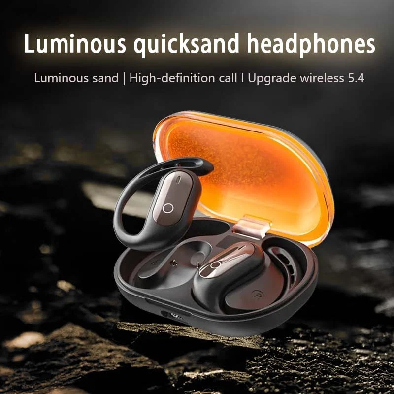 The design features a dazzling glow of flowing sand at night Unique dynamic quicksand + luminous coating, cool and eye-catching for running or night use, ideal for gifting. Hanging type for stable wearing Ear loops + lightweight design, won't fall off at all, suitable for sports and business scenarios, no pain even after long-term wear. LED digital battery level screen Real-time display of remaining battery power and volume, say goodbye to battery anxiety, and control is clear at a glance. Ultra-long battery life + high-definition calls With a 30-hour battery life and dual-microphone noise reduction support, calls are as clear as if you were face to face.