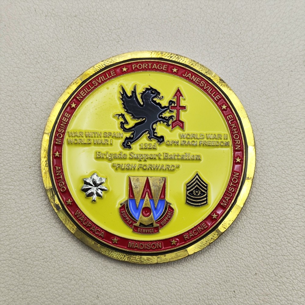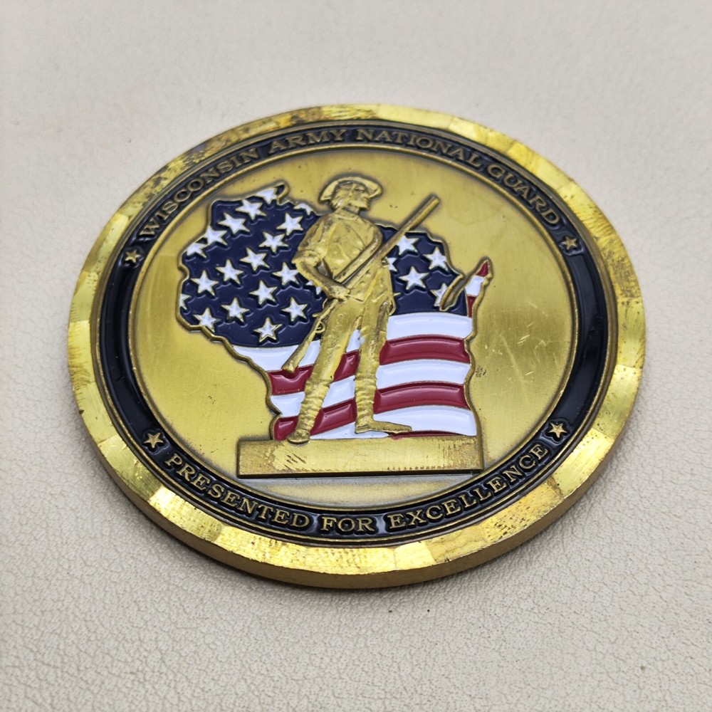 TITLE: Wisconsin Army National Guard Presented for Excellence Challenge Coin SIZE : Measures Approx 2" Used coins are inevitably flawed please see pictures PAYMENT : We support multiple payment methods and ship within 5 days of payment SHIPPING : We offer free shipping, and your purchase will be carefully packaged and sent to you with tracking information through eBay SERVICES : You can contact us at any time if you have any questions, We will get back to you as soon as possible to solve your problem If you are not satisfied with your purchase for any reason, Please contact us before leaving neutral or negative feedback and we will solve the problem properly for you