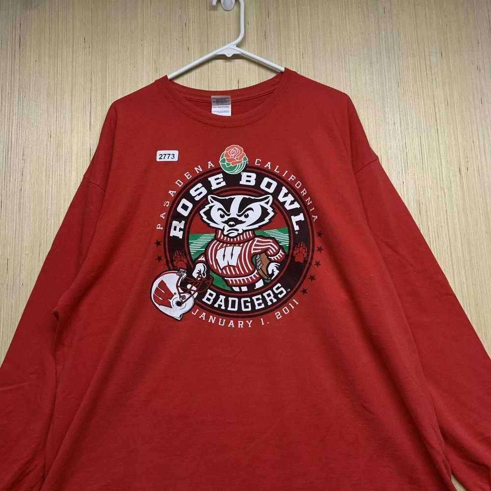 99Show your love for the Wisconsin Badgers with this limited edition, vintage-style T-shirt. The shirt features a solid red color with an embroidered logo on the front, showcasing the team's Rose Bowl victory in 2011. The shirt is made of comfortable and breathable cotton material, with a knit fabric type and a double-sided design. This men's T-shirt has a regular fit and long sleeves, with a crew neckline and a full zip for easy wear. It also features button accents and is preshrunk, lightweight, and stretchy, making it perfect for all seasons. The shirt is handmade and operates on a Friends and Free! character family theme. Get your hands on this highly personalized, yet stylish shirt, and show your support for the Wisconsin Badgers in any way possible.