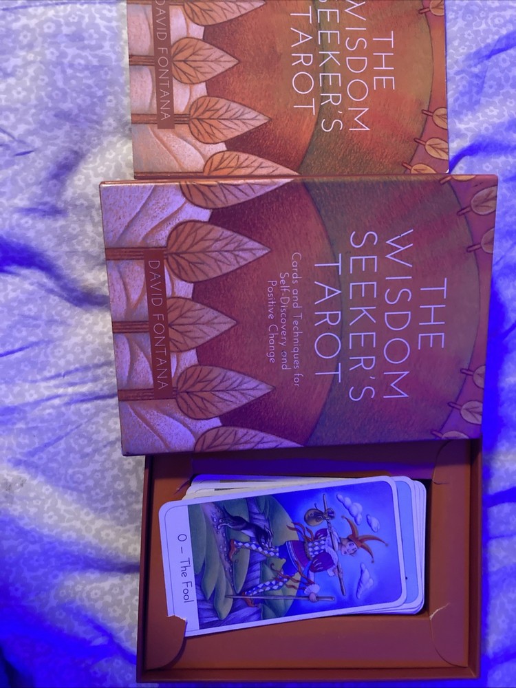 Wisdom Seeker's Tarot : Cards and Techniques for Self-Discovery and Positive... A great starter deck for those wanting to give tarot a shot. Includes a deck with beautiful artwork as well as a small guide book to help introduce newcomers to tarot and the symbolism in the cards! very lightky used, i inherited it new from my aunt and few years ago and while its quite insightful, i dont completely connect to it and would love to see it in new hands that might find that connection.