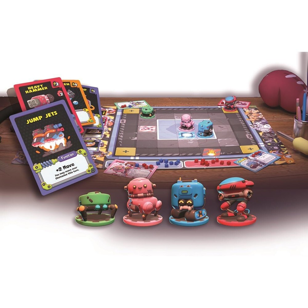 Robot Quest Arena is an exciting deck-building board game. 2-4 Players will battle it out to become the best Robot Tech in the world! Craft your deck to control, protect and upgrade your bot as you fight to knock out competitors in the arena. This game contains 4 adorable robot minis that you will use in the arena. Navigate and survive the hazards of the arena, whilst also battling your opponents. If your bot gets destroyed, don't worry, as each destroyed bot gets respawned at the end of every round. Ensuring you never miss the action.
