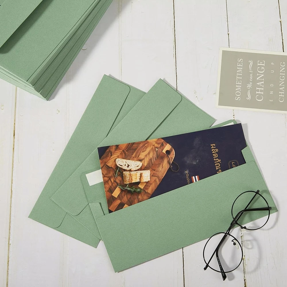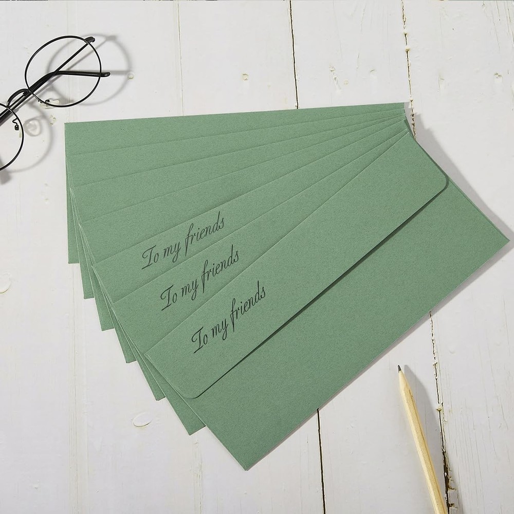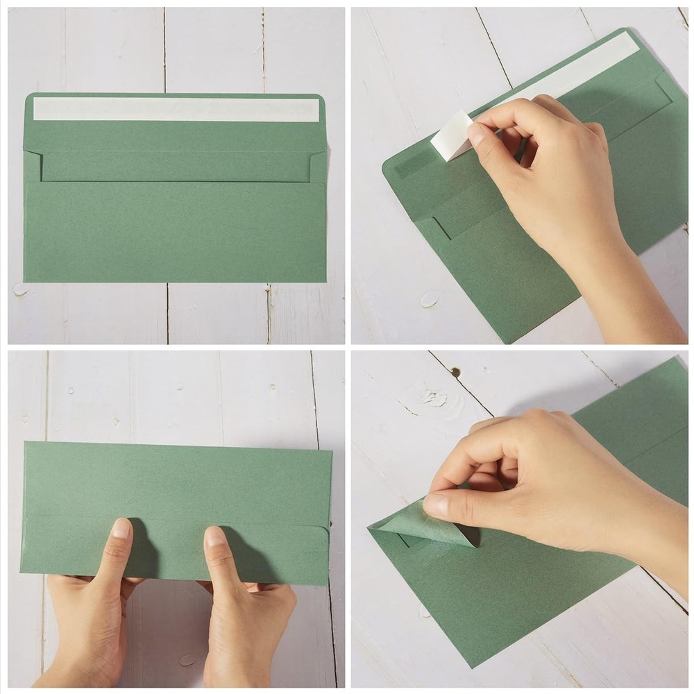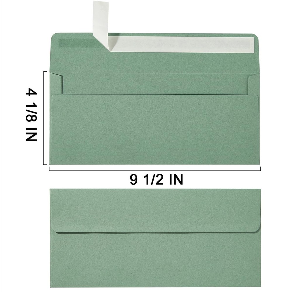 Wishop 100 Pack Sage-Green #10 Business Envelopes Self One Size, Sage Green Product Information Including: 100 pieces Sage-Green #10 envelopes; the flap envelopes of 4.13 x 9.49 inches; meet your daily needs; Quality: the #10 envelopes are made of 110GSM paper; the thickness of the paper may vary slightly due to different colors but it doesn't affect your use; durable and don't fade; Easy to Use: When using them, just tear off the strip and sealing the flap; smooth surface and easy to write; Perfect Gifts: The Sage-Green business envelopes are great way to communicate with your friends and families; Perfect for expressing one's thanks, inviting others to the party, such Baby Shower, Halloween, Thanksgiving, Christmas etc. More Choices: There are more sizes and colors of envelopes for you to choose from; So you can choose your favorite combination; This will bring you more fun; #10 Envelopes Sage-Green!Specifications:Material: 110GSM PaperSize: 4.13 x 9.49 inchesPackage Includes: 100 x Business EnvelopeIf you have any questions about our products, please contact us in time and we will reply to you within 24 hours. Shop with Confidence ✔ Fast handling time (up to 3 business days) ✔ Free 30-day returns ✔ Carefully packaged and shipped