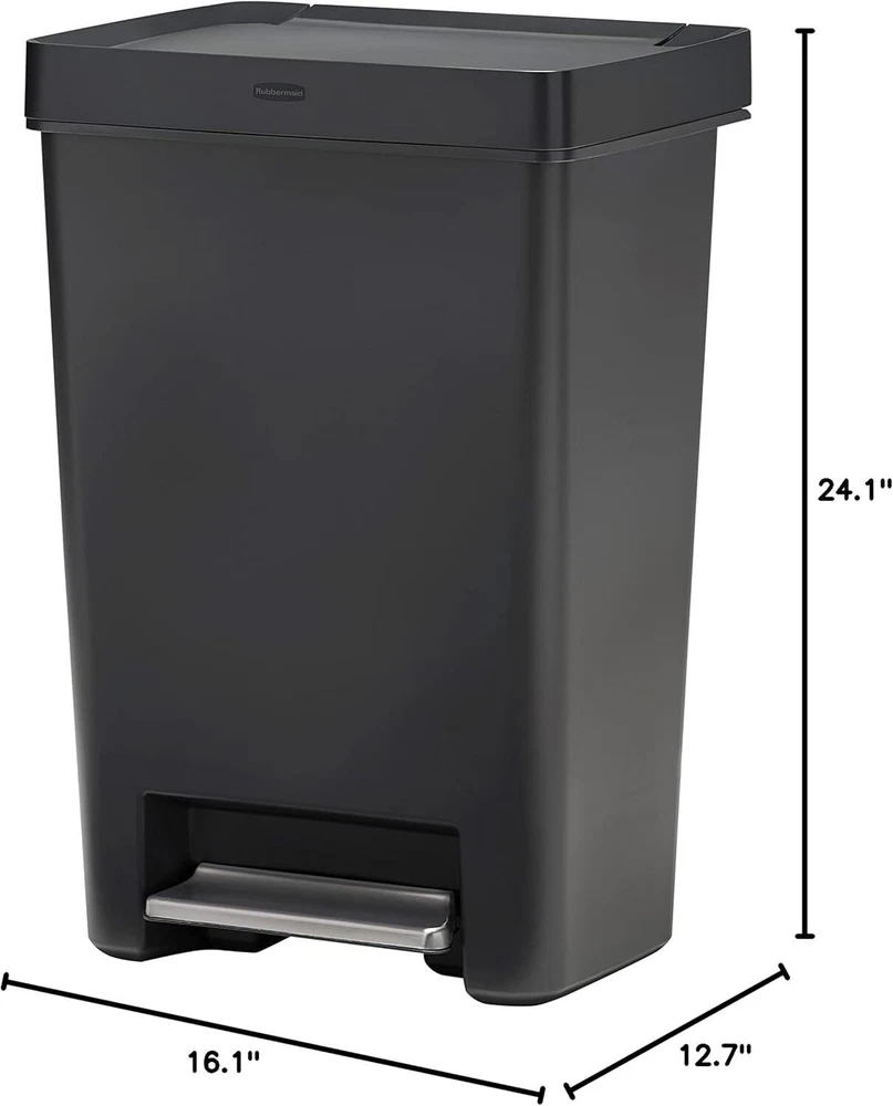 Product Description Premier Series II Step-On Trash Can for Home and Kitchen, with Lid Lock and Slow Close, 13 Gallon, Charcoal HANDS-FREE USE: Step-on the charcoal stainless-steel foot pedal to open the container for sanitary, hands-free waste disposal MODERN DESIGN: The sleek charcoal body with complementary metal accent enhance your space, Interior venting channels thoughtfully designed to make removing heavy trash bags effortless. LID LOCK: Discrete lid lock keeps the container lid locked open for longer tasks, or closed to keep out pets and children SLOW CLOSE LID: Quiet, controlled lid closure is designed to reduce unwanted noise and ease down gently HOLDS BAG IN PLACE: Integrated LinerLock(TM) technology secures the bag to the container and prevents slipping with heavy loads About Us We are a reputable seller with many years of experience selling on eBay. Our goal is to provide high-quality products and excellent customer service. Shipping Items will be shipped within 1-3 business days when we received payment. (Orders are not processed on weekends & holidays) Tracking information will be sent once item is shipped. Delivery time depends on destination and other factors Item is shipped to ebay address. Leaving correct address can minimize delay. For international shipping and shipping to Guam, Hawaii and Alaska, Please contact us before placing the order. International buyers please note: Import duties, taxes and charges are not included in the item price or shipping charges. These charges are buyer’s responsibility. We will try our best to reduce the risk of the custom duties. Local pick-up is unavailable at the moment. Contact Us We reply any email messages within 1 business / working days(off-duty at weekend). If you do not get a response from us, then please check your junk or spam mailbox. Our Business hours: Mon-Fri 9:00-18:00, UTC/GMT +8 hours. Please contact us either by clicking "contact seller" in the "purchase history" section or simply click "ask a question" at the bottom of this page. If you are unsatisfied with our item or service, please contact us before leaving any feedback. We are committed to resolve all issues in a friendly and satisfactory manner.