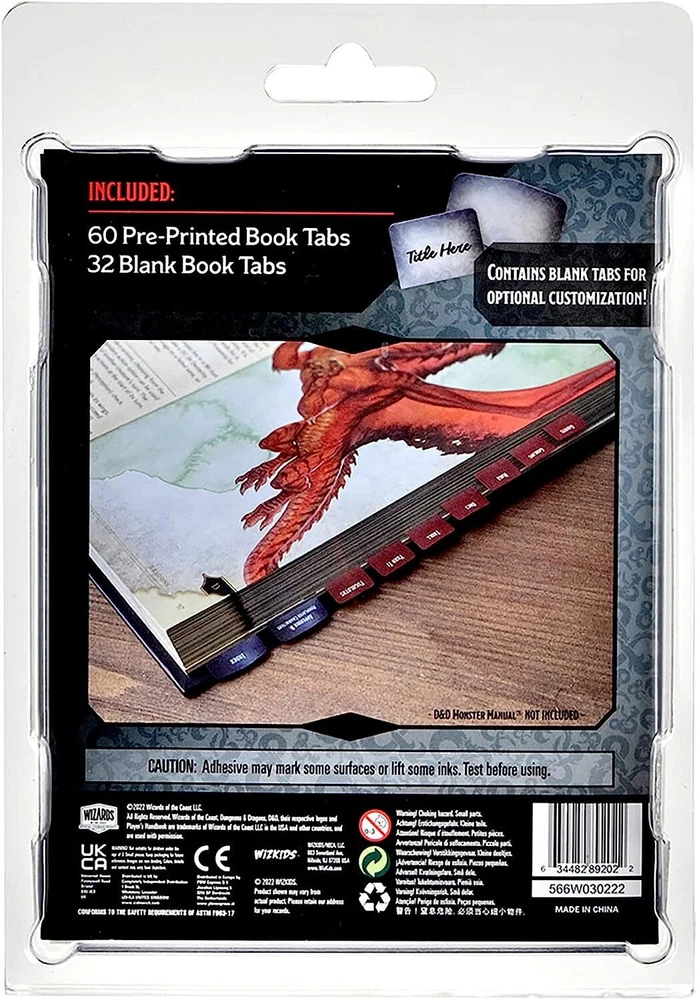 Further Details Title: WizKids/NECA 84393 Accessories, Multi-Coloured Condition: New Description: PRODUCT DESCRIPTION Never lose your place with adhesive book tabs for the Monster Manual. This pack contains 92 acrylic tabs designed to help busy dungeon masters keep track of important creatures like dragons, beholders, and even blank tabs for complete customization. The Monster Manual book tab pack contains the following: 20 Large tabs 1x Introduction 1x Appendix A: Miscellaneous Creatures 1x Appendix B: Nonplayer Characters 1x Table: Proficiency Bonus by Challenge Rating 1x Index 15x Blank tabs and 72 other Small tabs that cover various subchapters and sections of interest, including a tab for each of the letters in the letters Alphabet! SAFETY WARNING Not suitable for children under 36 months Brand: WizKids Games Release Date: 01/01/2020 Age Level: 14 years and up Item Length: 203mm Item Width: 139mm Item Height: 12mm MPN: 84393 Item Weight: 45g Type: Board Games Color: Multicoloured Material: Plastic Theme: Alphabet,Letters Number of Pieces: 1 Language: English Age Level: Ab 14 Jahren D&D Book Tabs: Monster Manual - EN Missing Information? Please contact us if any details are missing and where possible we will add the information to our listing.