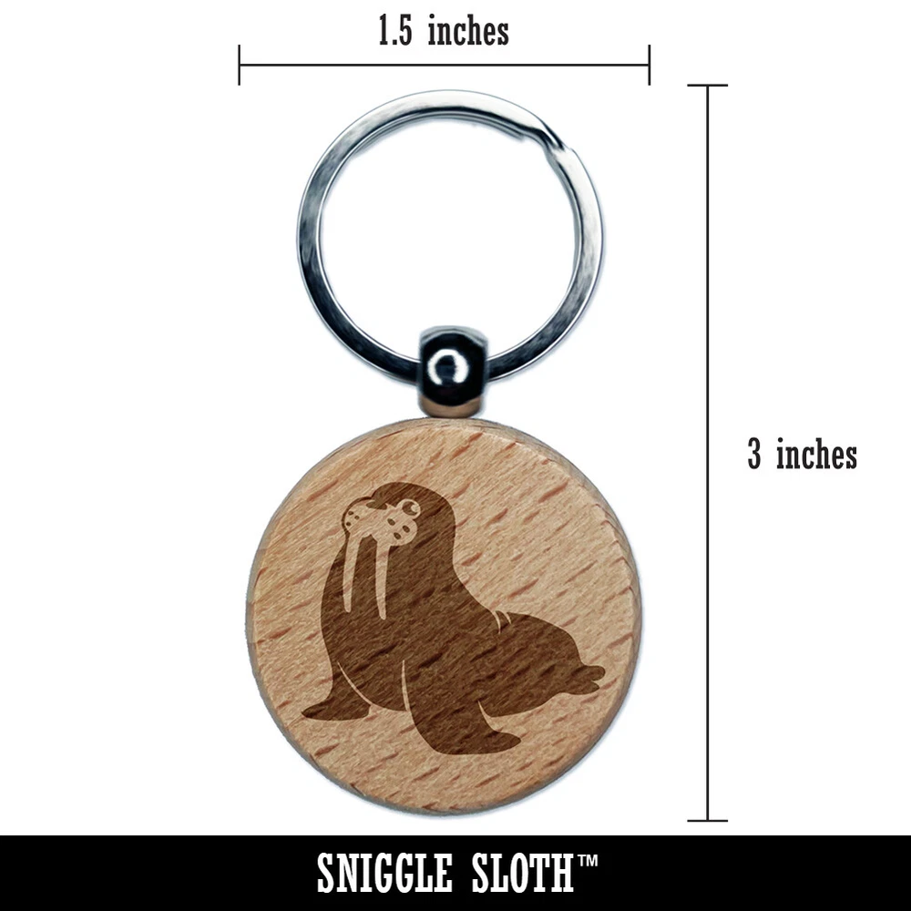 Wobbly Walrus Engraved Wood Round Keychain Tag Charm