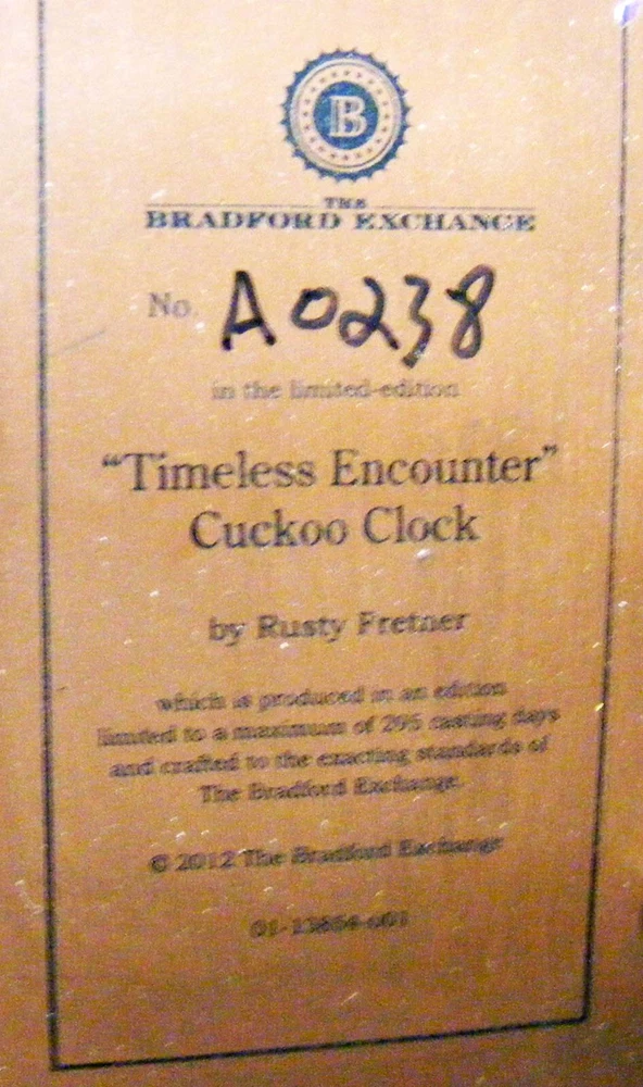 Type: Cuckoo Clock Brand: Bradford Exchange Seller Notes: “Very nice condition and it works great.”