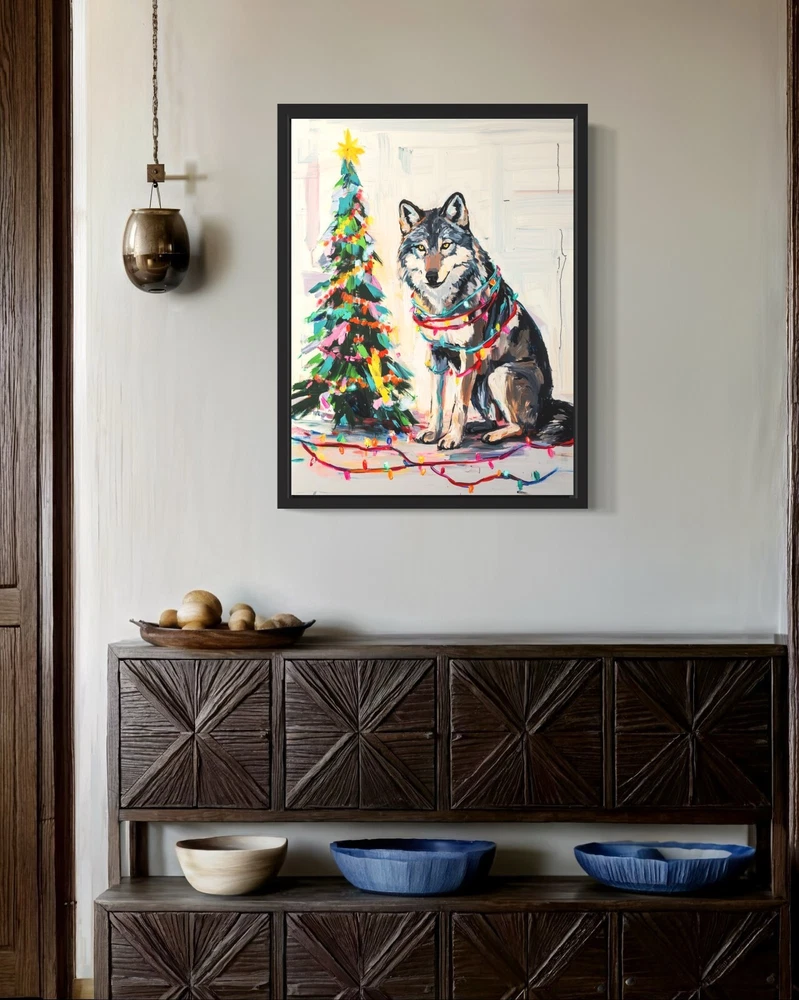 Wolf Christmas Art Print Poster City Wall Art Painting Artwork