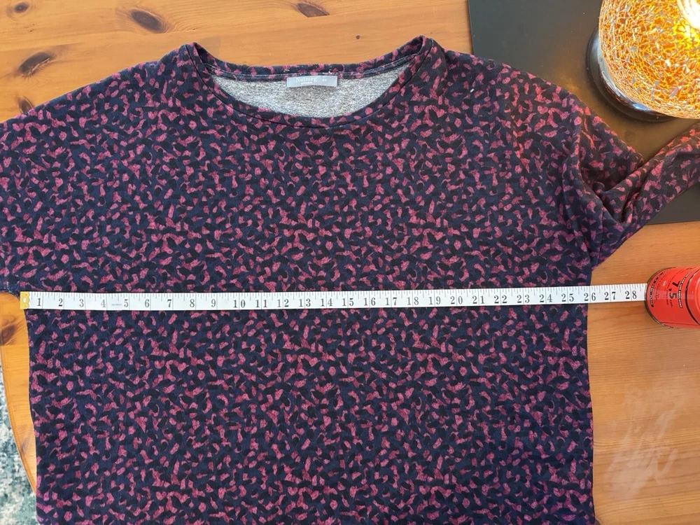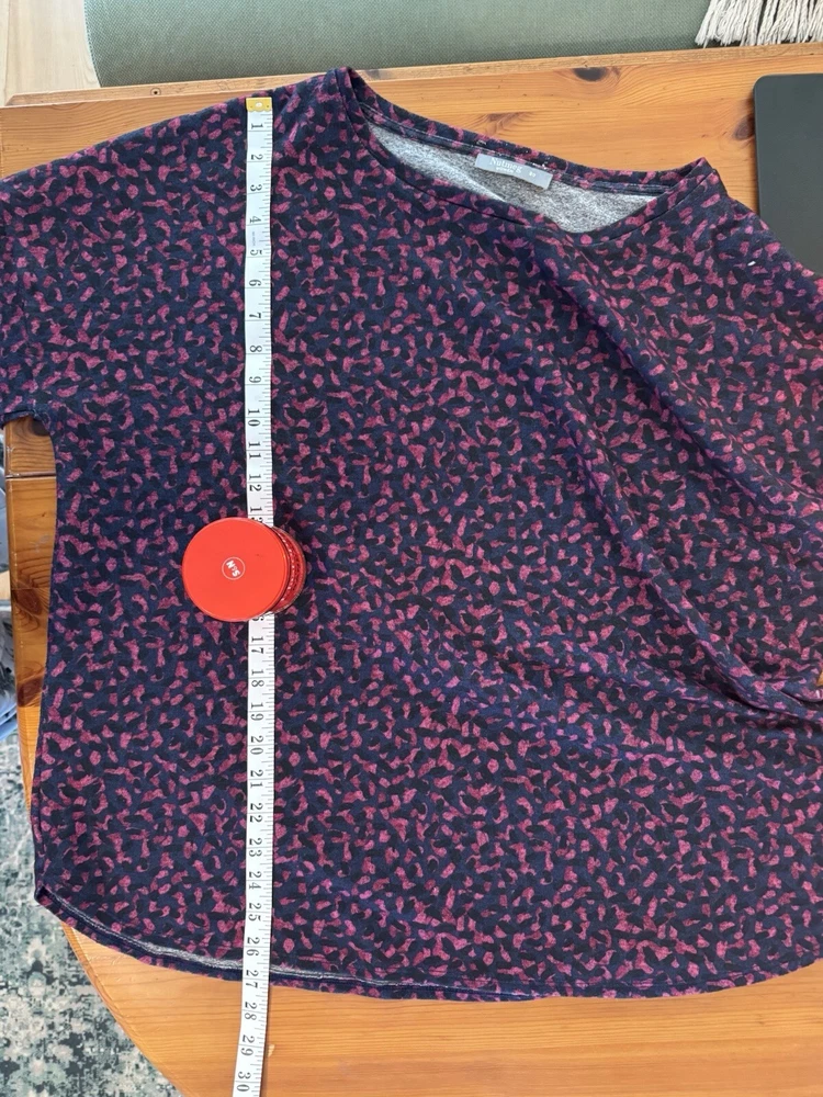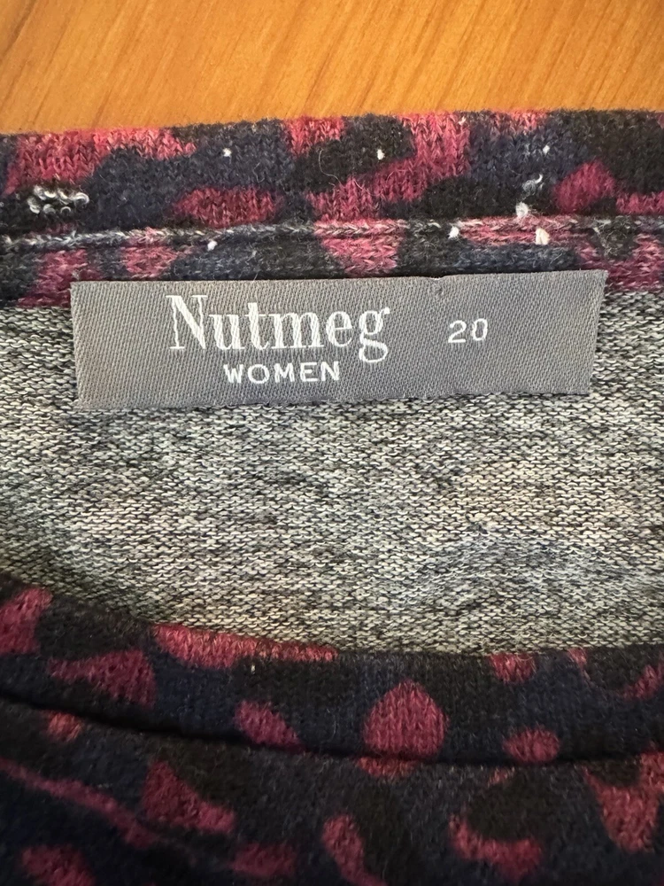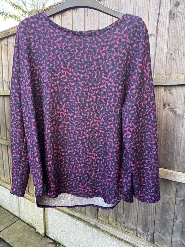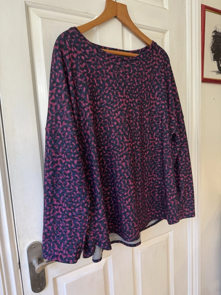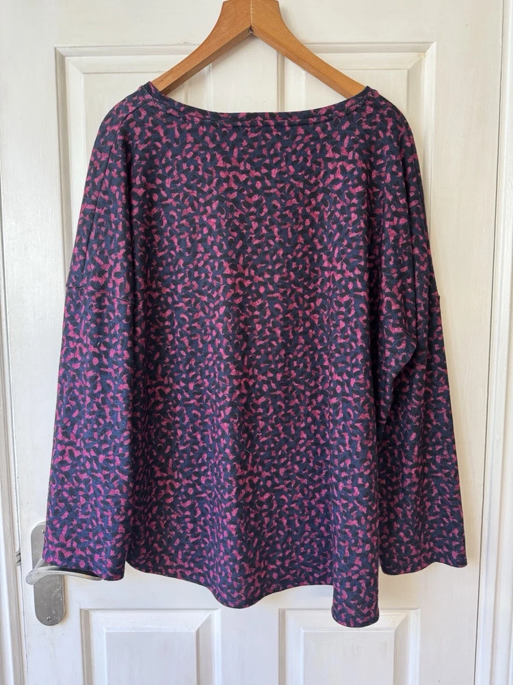Woman's. Used. Nutmeg. Size UK 20 / EU 48. Top, Shirt. Navy with Pink Shapes. Pullover Over. Long Sleeves Measurements : Chest 52" / Length 26.5" (please see photos). For Fabric and Care Instructions : please see photos. You only pay what I pay for shipping