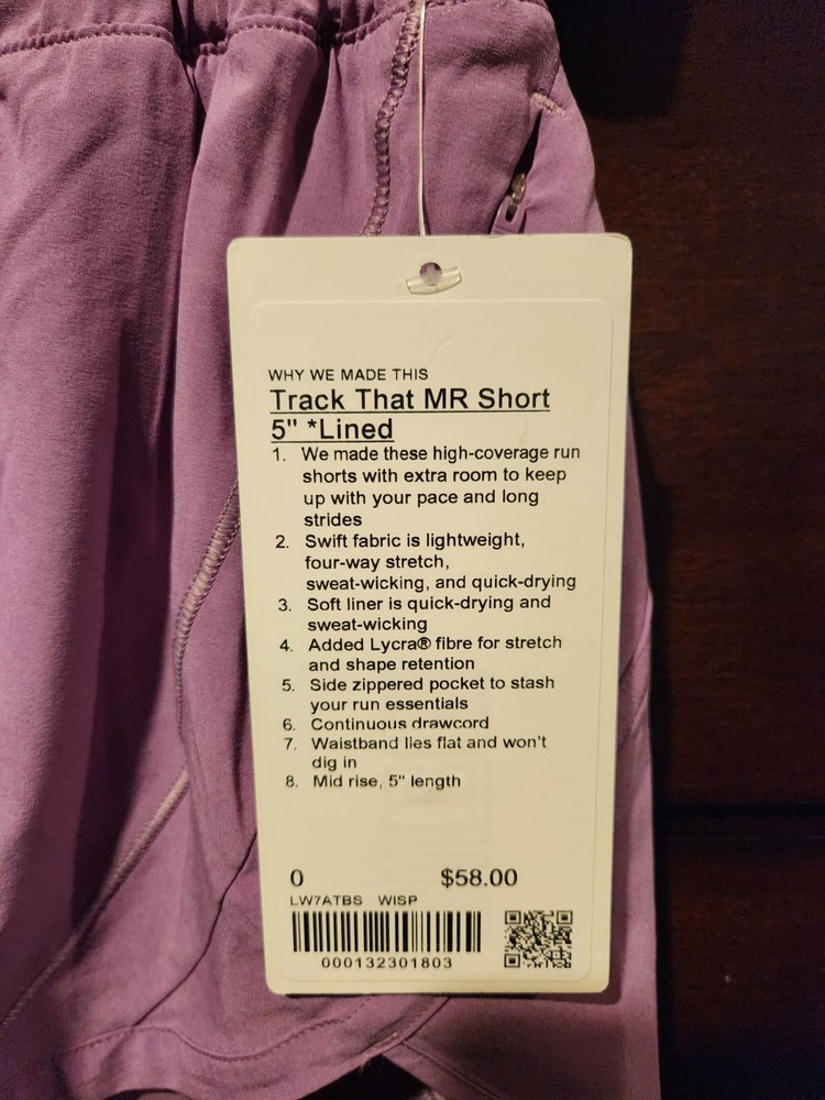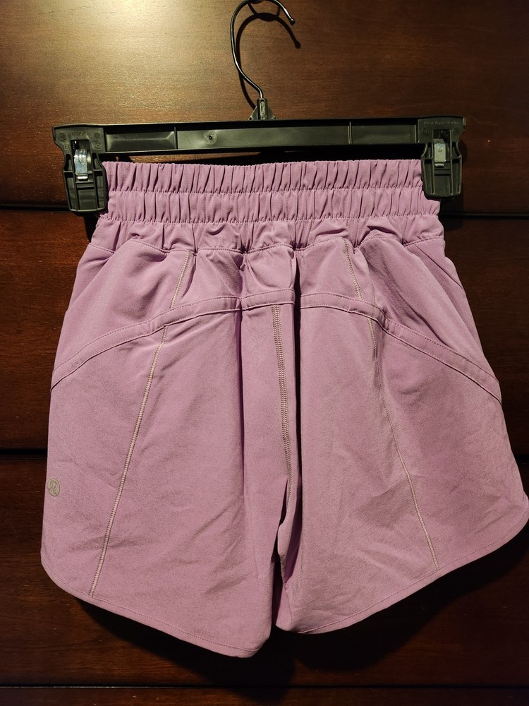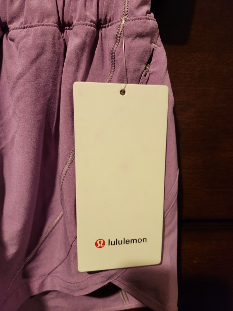The product is a women's Lululemon track that lined short in size 0 with a 5-inch inseam in the color Purple Blossom Light. These athletic shorts are designed for active wear, making them perfect for sports or workouts. The lined feature adds extra comfort and support during physical activities. The vibrant color and sporty style make these shorts both functional and fashionable for women looking to stay active and stylish.