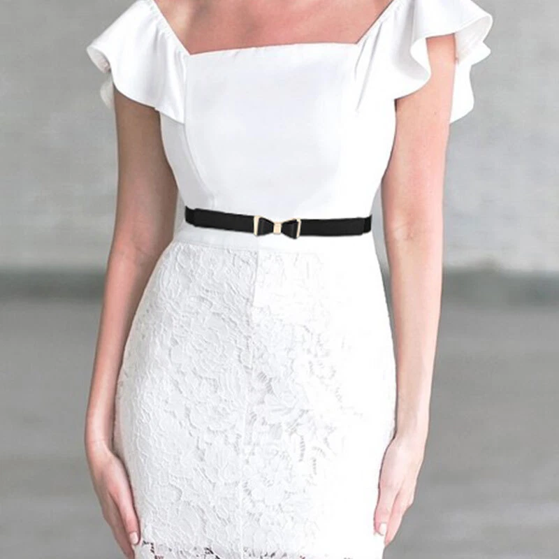 Women Belt Elastic Waistband Elegant Dress Gold Buckle Belt Leather Strap Waist