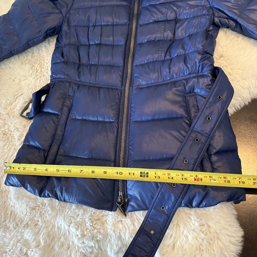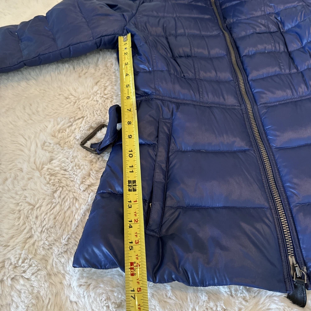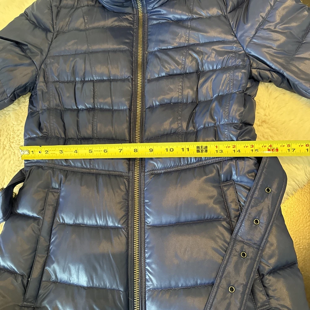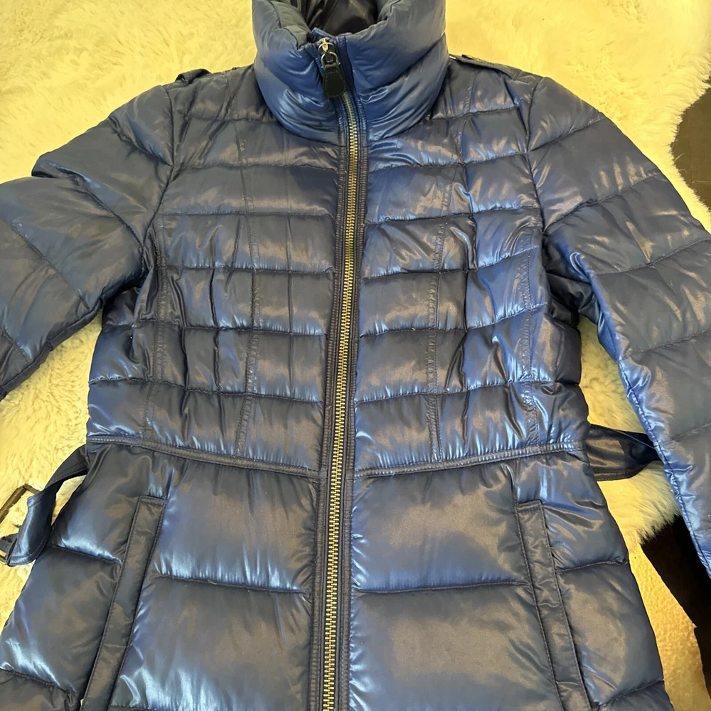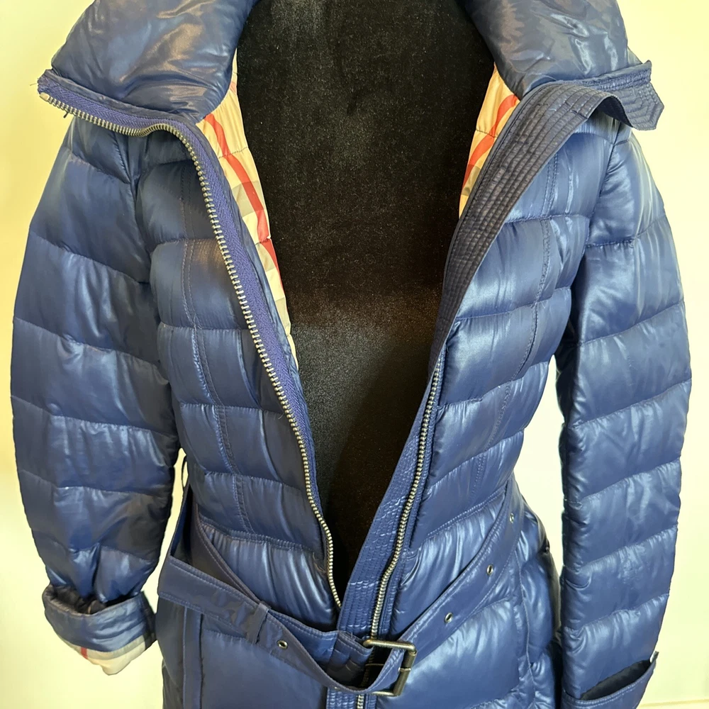 100% AUTHENTIC Pre owned Only wear it few times. No damage. No stain Women Burberry Belted Waist Quilted Puffer Down Signature Check Coat BLUE Size S Color: Blue Size: small