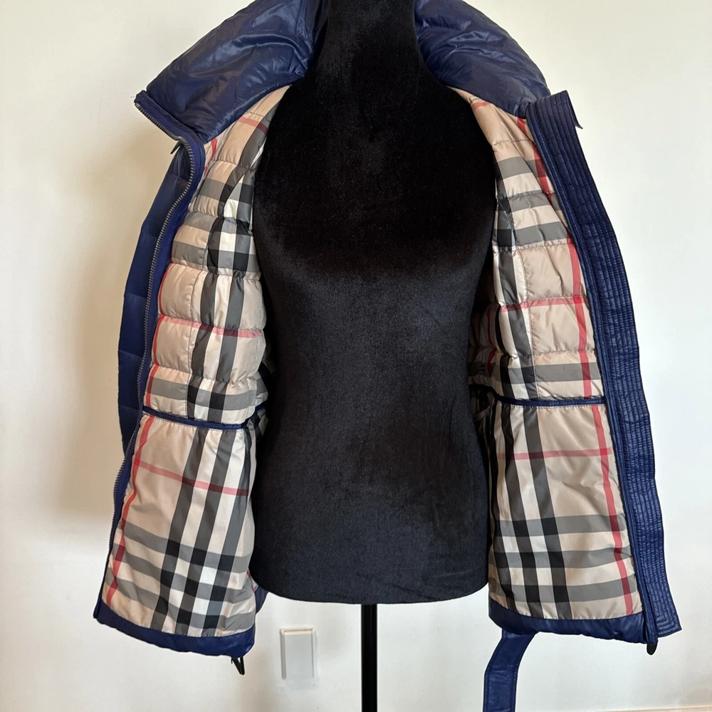 Size: S UPC: Does not apply Department: Women Features: Belted Pattern: Check Outer Shell Material: Down Coat Accents: Quilted Model: Burberry Brit Insulation Material: Down Type: Coat Size Type: Regular Color: Blue Brand: Burberry Style: Quilted gtin13: Does not apply