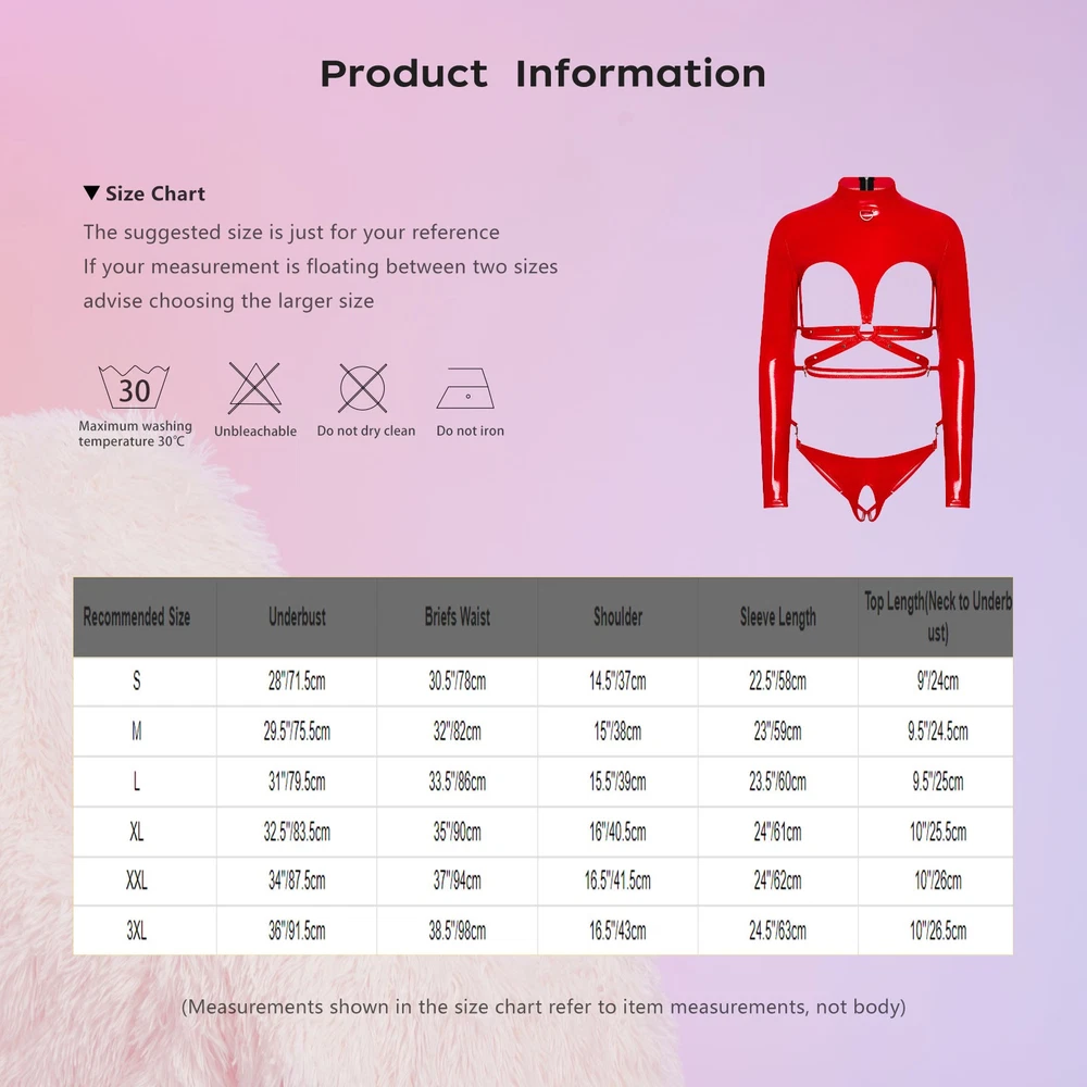 Click Here to New Arrivals New Arrivals Hot Sale Women's Dresses Women's Swimsuit Girls'Dresses Girls'Sleepwear Girls'Swimwear Boys'Clothing Baby Clothing Women Catsuit Hollow Out Clubwear PVC Bodysuit Teddy Jumpsuit Exotic Leotards #1 Set Include : 1Pc Women’s Bodysuit Condition : New with tags Material : 80% PU, 10% Alloy, 10% Polyester Features: Crafted from a blend of PU, alloy, and polyester, this bodysuit offers a unique combination of texture and durability, ensuring a long-lasting and comfortable fit. The glossy PU finish gives a modern and fashionable look, adding a touch of luxury and sophistication, perfect for making a bold statement. The O-ring linked and clasps are a trendy and edgy element, enhancing the visual appeal and adding a sense of playfulness to the lingerie. The long-sleeve hollow-out cup and open-crotch design create a seductive and alluring style, highlighting the feminine charm and increasing the allure. Ideal for special occasions such as dating or anniversaries, this bodysuit can help create a romantic and passionate atmosphere. Size Chart : The suggested size is just for your reference. If your measurement is floating between two sizes, advise choosing the larger size. (Measurements shown in the size chart refer to item measurements, not body) Tag No. Recommended Size Underbust Briefs Waist Shoulder Sleeve Length Top Length(Neck to Underbust) S S 28"/71.5cm 30.5"/78cm 14.5"/37cm 22.5"/58cm 9"/24cm M M 29.5"/75.5cm 32"/82cm 15"/38cm 23"/59cm 9.5"/24.5cm L L 31"/79.5cm 33.5"/86cm 15.5"/39cm 23.5"/60cm 9.5"/25cm XL XL 32.5"/83.5cm 35"/90cm 16"/40.5cm 24"/61cm 10"/25.5cm XXL XXL 34"/87.5cm 37"/94cm 16.5"/41.5cm 24"/62cm 10"/26cm 3XL 3XL 36"/91.5cm 38.5"/98cm 16.5"/43cm 24.5"/63cm 10"/26.5cm Friendly Tips: The size is measured by hands, please allow 1-3cm errors of measurement. Photo color might be a little different from the actual product due to color display of different monitors. #2 Set Include : 1x Bodysuit Condition : New without tag Material : Nylon, Spandex Features : Womens See-through Mesh Crotchless Bodysuit Hollow Out Halter Backless Leotard Lingerie Nightwear. Made of soft fabric, breathable, lightweight, comfy to touch and wear, makes you feeling well. Sheer mesh and crotchless design, perfect show your charming curve and makes you attractive to your lover. Halter neck, lace-up at back, sleeveless and backless bodysuit, a good gift for yourself or your lover. Perfect for wedding night, honeymoon, Valentine’s Day, anniversary, bedroom, bathroom or date night. Size Chart The suggested size is just for your reference. If your measurement is floating between two sizes, advise choosing the larger size. (Measurements shown in the size chart refer to item measurements, not body) Tag No. Recommended Size Chest Neck to Crotch One Size One Size 23.6-39.4’’/60-100cm 22.4’’/57cm Friendly Tips: The size is measured by hands, please allow 1-3cm errors of measurement. Photo color might be a little different from the actual product due to color display of different monitors. Product names are trademarks of the listed manufacturer or other owners, and are not trademarks of alwaysforbauhinia. The manufacturer does not necessarily endorse use of these products. Payment Methods Terms and Conditions Shipping Combined shipping is limited only to the items listed under this seller account : alwaysforbauhinia All the free shipping item don't offer discount. We REDUCE US$1.00 on shipping cost for each additional item. Please contact us to send you the update invoice once you finish your purchase. Please note that only the item in same currency can be combined.Please note that we do NOT offer shipping discount for bidding orders or item value less than $5.00 International Orders: The buyer is responsible for any applicable import duties and local taxes. Please verify with your customs before making your purchase. Please verify your address during checkout. We are not responsible for any wrong or undeliverable addresses. Your item will be sent to your ebay address. Please make sure your ebay address is correct. Any non- received items caused by invalid address are not in our full refund or replacement policy. All items will be shipped within 1 business day after full payment is received. It takes about 10-20 days to US UK AU DE; about 20-35 days to other countries.Shipping may influenced by holidays, events and other uncertainties. We could not guarantee the arrival time. If you can't accept the shipping time, please check the extra charge with us to ship your item via express. Please check my other products below: Women Wet Look Cutout Patent Leather Bodysuit Leotard T-Back Clubwear Nightwear USD 9.99 Women Jumpsuit Shiny Dancewear Party Bodysuit Striped Leotard Mesh Costume Sexy USD 8.99 Womens Bodysuit High Cut Jumpsuit Pool Leotard Monokini Romper Thongs Swimwear USD 7.99 Womens Shirt Business Bodysuit Solid Leotard Work Jumpsuit JRegular Costume Top USD 7.99 Women Wet Look Leather Bodysuits Mock Neck Leotard Babydoll Catsuit Nightwear USD 11.69 Women Sexy Hollow Out Catsuit PVC Full Bodysuit Leotard Clubwear Costume USD 11.49 Womens Jumpsuit Shiny Bodysuit Metallic Rompers Training Class Acrobatics Mesh USD 8.99 Women Shiny Oil Jumpsuit Nylon Hollow Out Bodysuit Leggings Cutout Bodystocking USD 10.99 Women Swimsuit Sleeveless Bodysuit Sexy Swimwear Leotard One Piece Athletic USD 9.49 Womens Rompers Music Bodysuit Stage Performance Jumpsuit Festival Costume 70s USD 11.99 Sexy Women's Fishnet Bodystocking Floral Hollow High Elasticity Cutout Lingerie USD 13.49 Women Jumpsuit Shiny Dancewear Long Sleeve Bodysuit Gymnastics Turtleneck Mesh USD 10.99 Womens Costume Performance Dancewear Leotard Dress Ballroom Bodysuit Class USD 9.99 Women Solid Color Full Body Hollow Out Butt Oil Glossy Long Sleeve Bodystockings USD 14.89 Women Dancewear Leotard Bodysuit Rhythmic Jumpsuit Roller Skating Dance Mesh USD 10.99 Women One Piece Shapewear Jumpsuit Sexy Outfits PVC Body