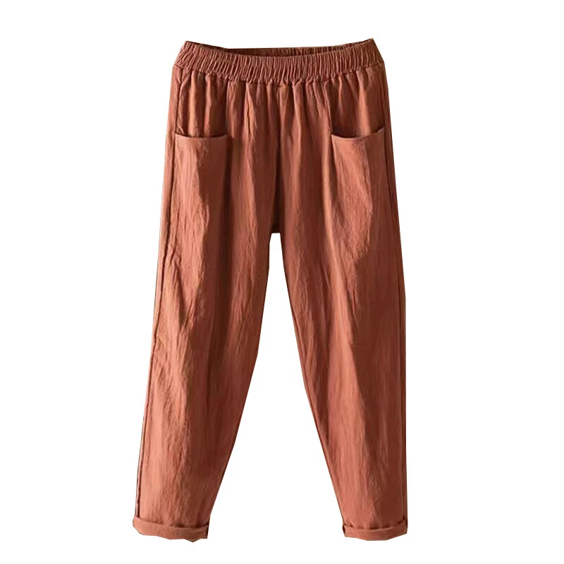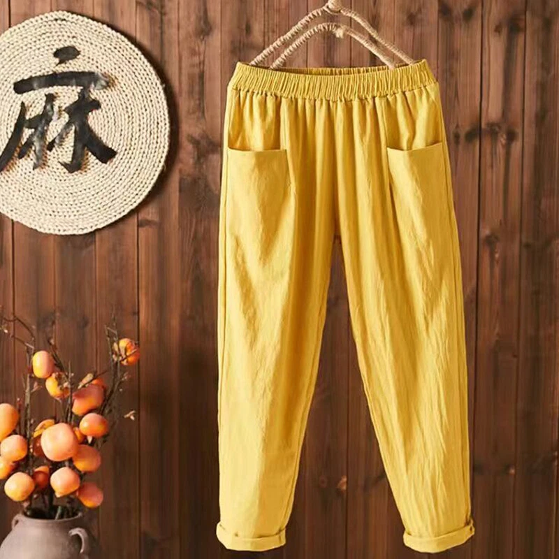 ❀Women Elastic Waist Cotton Linen Harem Pants Ladies Casual Baggy Solid Trousers