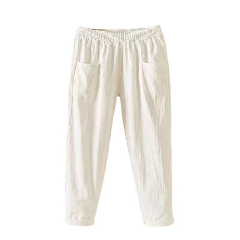 Specifications: 100% Brand new and high quality. Size:M,L,XL,XXL,3XL,4XL Color: white,black,yellow,red,coffee Material:cotton linen Pant length:ankle length Waist Type: high Pattern:solid color Season:spring,summer,autumn Note: 1.Due to the light and screen difference, the item's color may be slightly different from the pictures. Please understand. 2.Please allow 2-3% error due to manual measurement.Please make sure you don’t mind before you mid. 3.Size doesn’t fit all.Please carefully check size chart and select the size based on your real size. Wash before wear Cold gentle machine wash Do not bleach Do not tumble dry Drip dry Package:1 pcs women pant