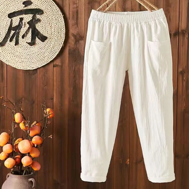 Specifications: 100% Brand new and high quality. Size:M,L,XL,XXL,3XL,4XL Color: white,black,yellow,red,coffee Material:cotton linen Pant length:ankle length Waist Type: high Pattern:solid color Season:spring,summer,autumn Note: 1.Due to the light and screen difference, the item's color may be slightly different from the pictures. Please understand. 2.Please allow 2-3% error due to manual measurement.Please make sure you don’t mind before you mid. 3.Size doesn’t fit all.Please carefully check size chart and select the size based on your real size. Wash before wear Cold gentle machine wash Do not bleach Do not tumble dry Drip dry Package:1 pcs women pant