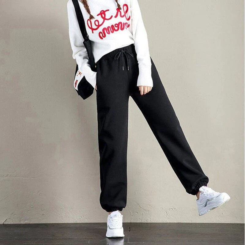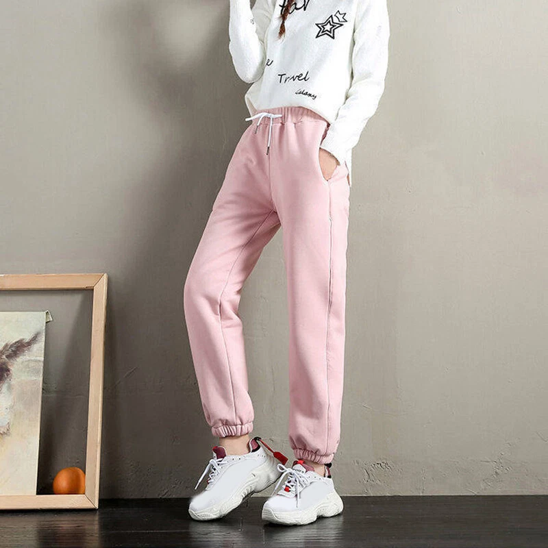 Women Fleece Lined Trousers Long Warm Jogging Pants Thick Elastic Waist Bottoms