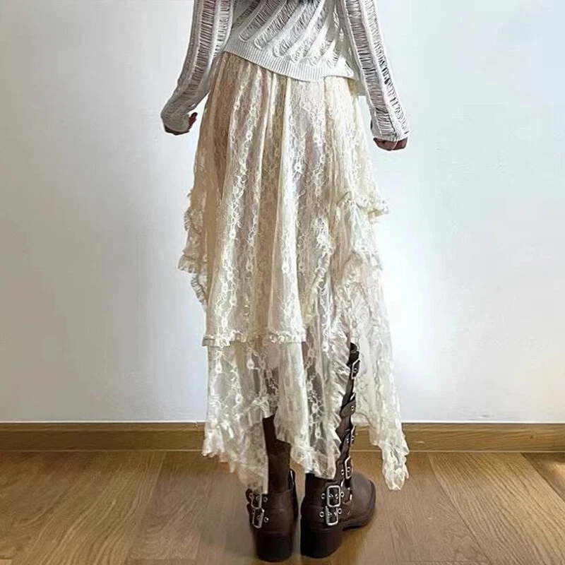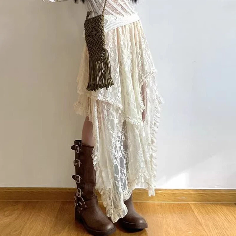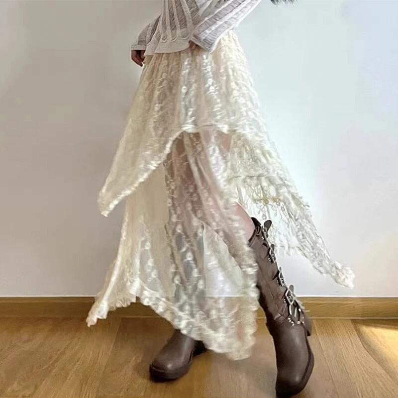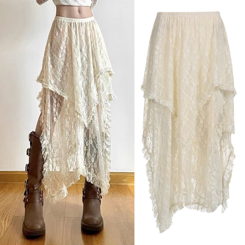 Women's A-Line Elastic Waist Irregular Skirts Ruffles Floral Lace Streetwear Description: Color: White Material: Polyester Very fairy skirt perfect for party, vocation, dance, performance and casual wear. Size: one size fits most. Package Included: 1pcs Notice: the skirts' tulle is thin-material so if you are worried about whether it is see-through or not, please choose them more carefully! Thank you so much!