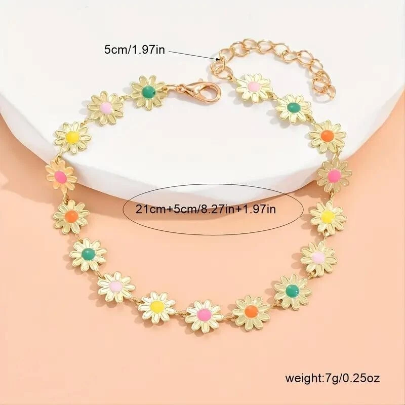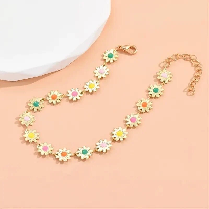 Women Flower Shape Beaded Anklet Colorful Dainty Ankle Bracelet Adjustable Gift