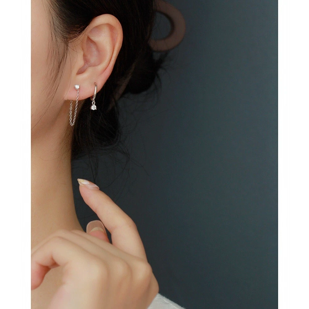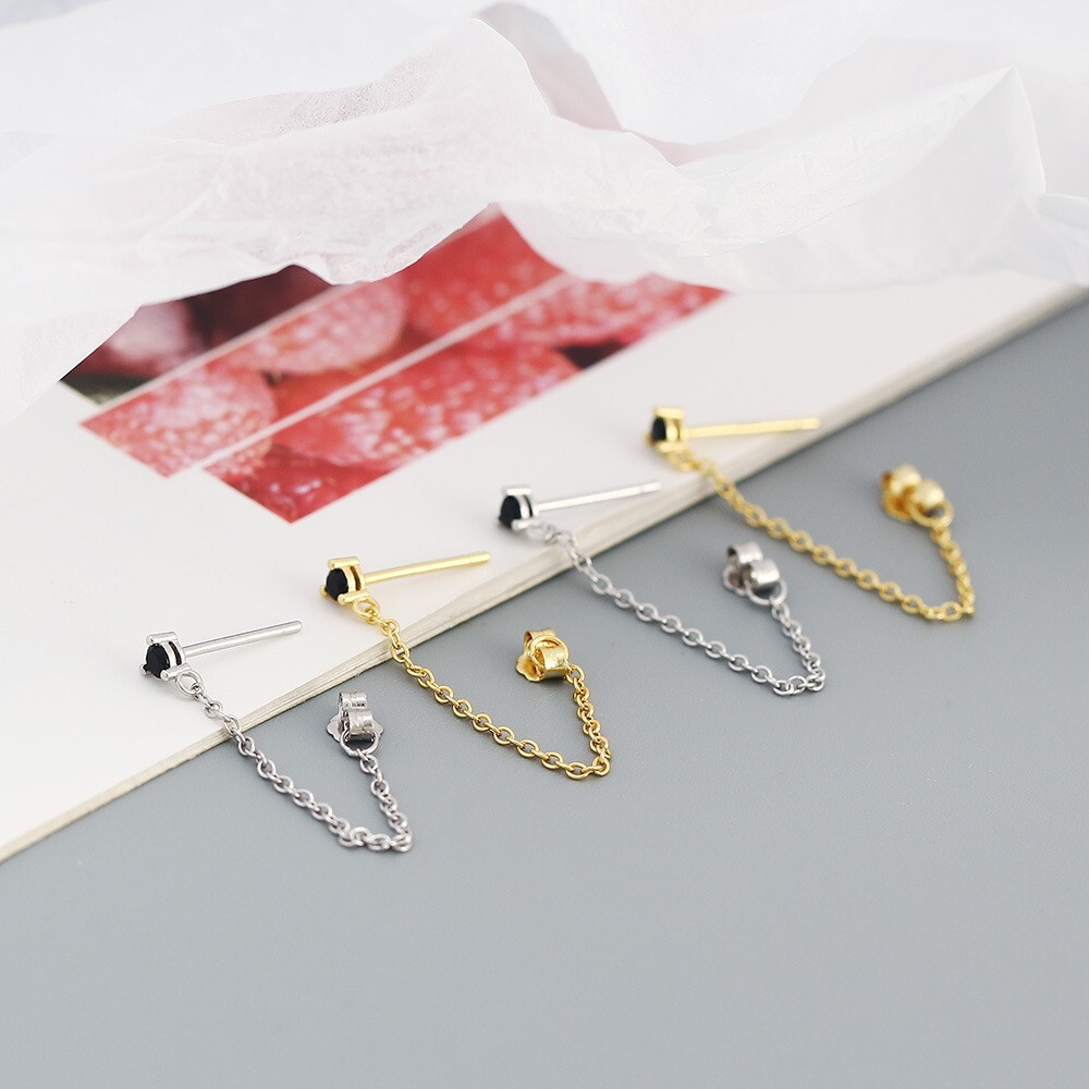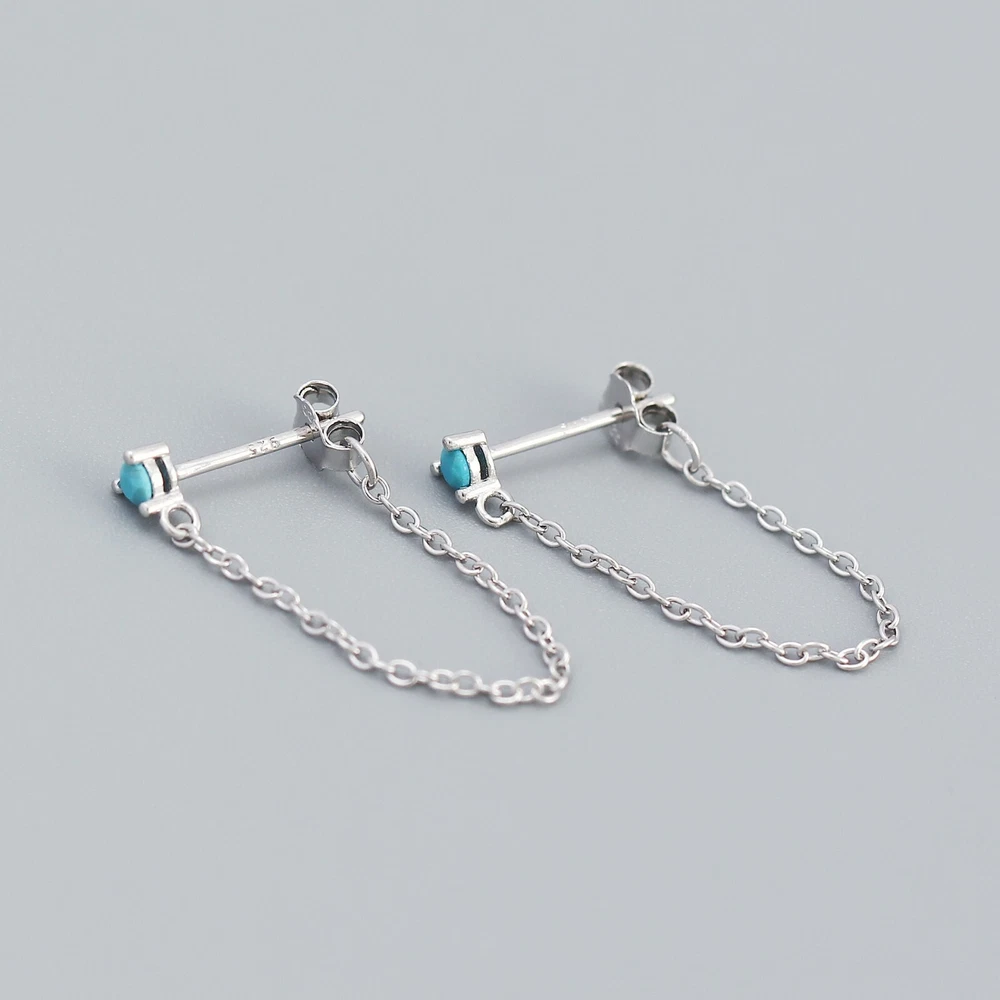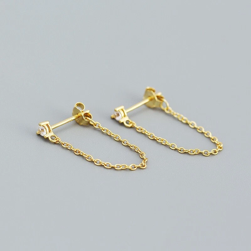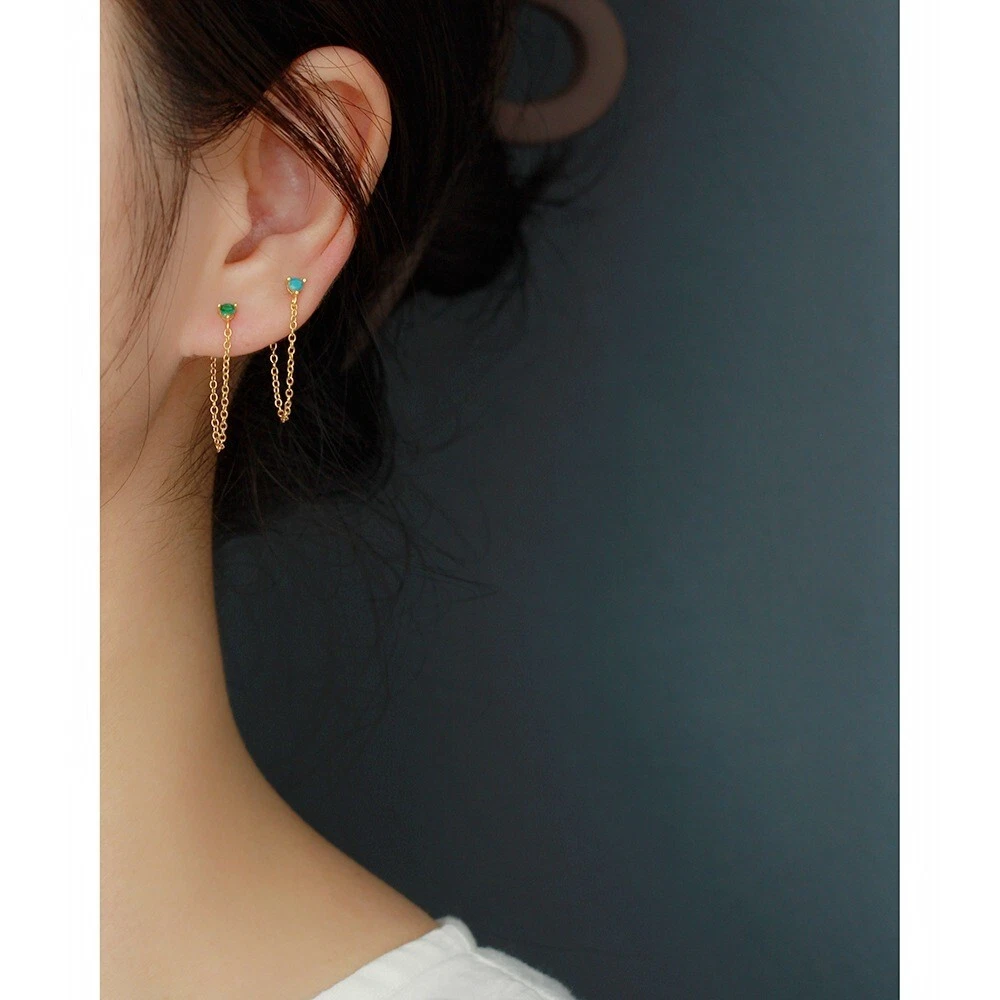 Adorable Round Shaped studs for everyone! Great gift for self rewarding or for your loved one, family, friends. CZ chain earrings, lightweight and easy to wear. This dangle Earrings are made of 18k gold plated S925 Sterling Silver. So they are waterproof, nickel-free, lead-free, cadmium-free and hypoallergenic, which will not turn your skin green or cause anaphylactic reaction. --------------------------------- DETAILS - CZ Part Size: 3.5x3 mm - Chain length: approx. 40mm - Material: Titanium, Gold Plated - Hypoallergenic: Yes - Color: Blue/Green/Black/White - Finish: Gold/Silver --------------------------------- CARE - Please avoid exposing your jewelry to water. - Keep them away from any oils, lotions or perfumes. - Remove before working out and at bedtime. --------------------------------- NOTE - The earrings are sold in pairs. - If you have any questions, please contact me at any time.
