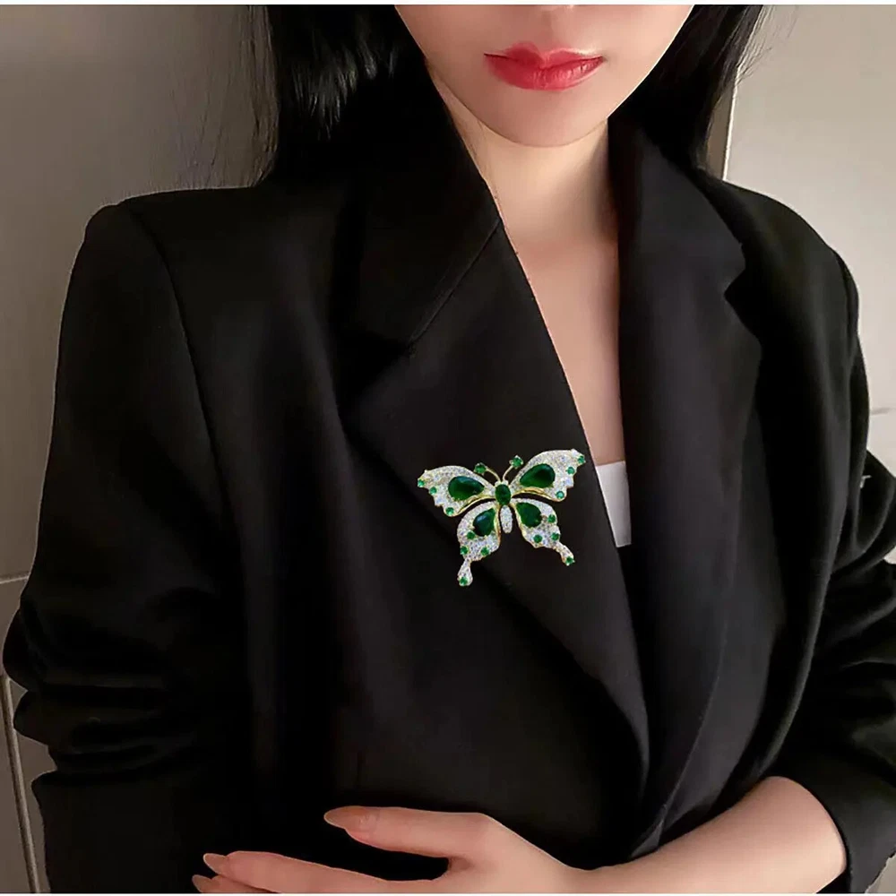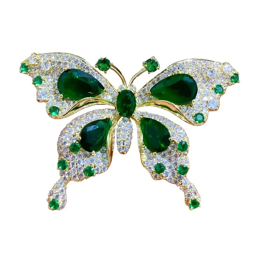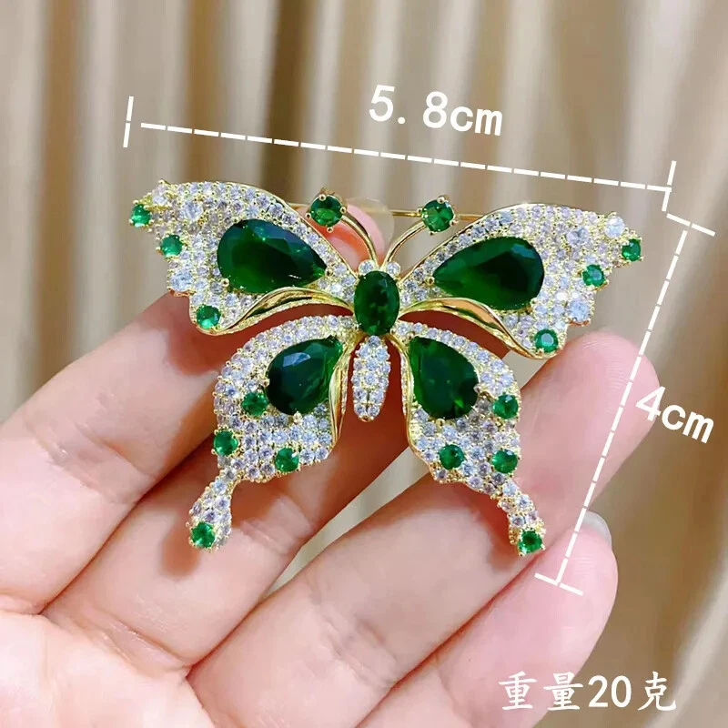 Women Girls Fashion Elegant Emerald Crystal Butterfly Brooches Jewelry