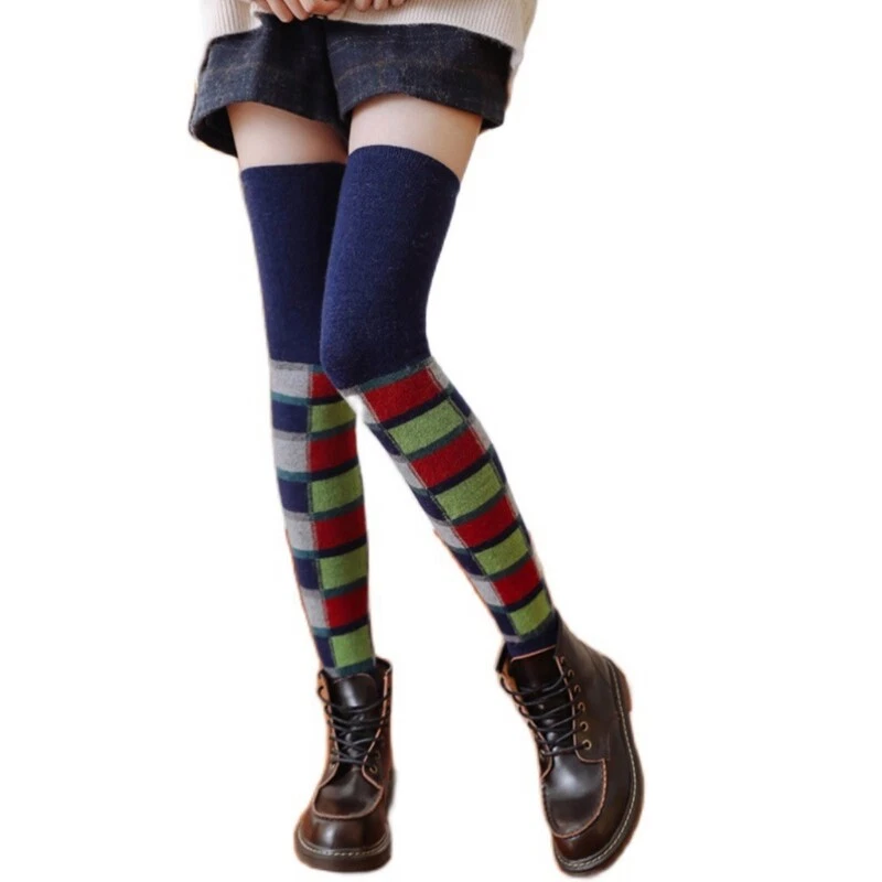 and high Features: high chinlon material, skin-friendly, stretchy, breathable, soft and comfortable to for touch. Over knee thigh high length, Multicolored striped plaid check patterns print. Easy to daily clothes. knitted socks: Pull down for a scrunch sock look, or pull up to thigh as leg warmer, over your shoe for a boot look. Great for young girls, women. Very warm and fashionable to wear, protect your legs well. Great gifts for yourself, family and friend. for outdoor, traveling, shopping, skiing, snowboarding, hiking, music party, sports, and any other outdoor activities. 1 pair of leg warmers only, other accessories in the picture are not included! Specification: Chinlon Sock Length: app. 55cm/21.65in Color Part Length: app. 20cm/7.87in Optional Color: Black, Coffee, Navy Blue, Red Quantity: 1 pair(2pcs) Warm prompt: 1.Asian people size is 1 or 2 sizes smaller than European and American. 2.Please note that low temperature washed,do not and place under the blazing for sun for quite a long for time. 3.As different measuring methods,it will occur 1-3 for cm deviation about the items,please ensure that it is okay for you before ordering. 4.Because of different monitors and lamplight,the picture may not reflect the actual color of the item,really thank you for your kind understanding! Package includes: 1 pair(2pcs) x Leg Warmers(without retail package)