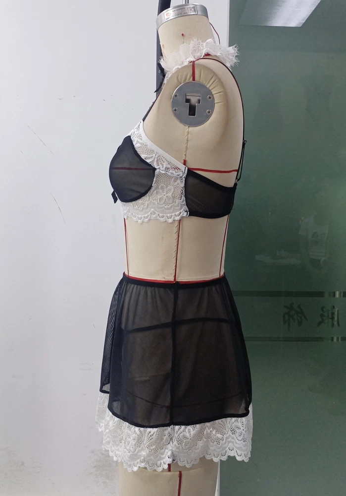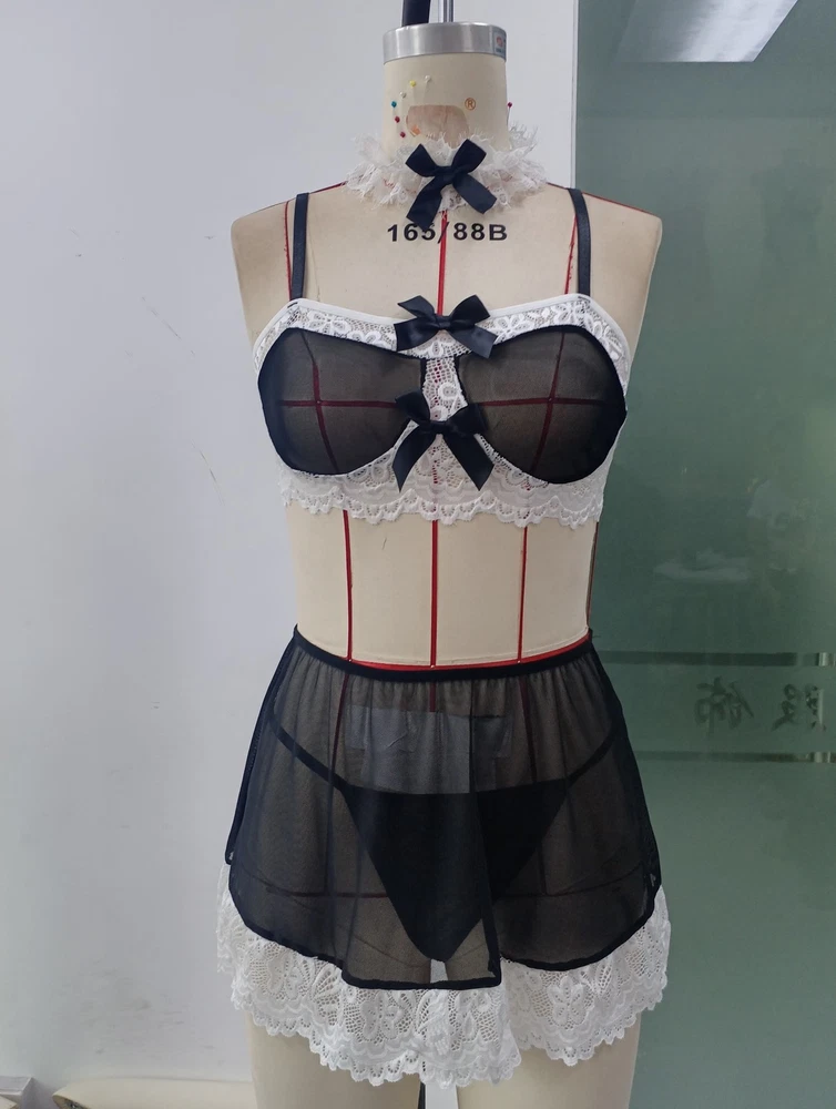 Women Lingerie Maid Cosplay Costume Sexy Role Play Bra Skirt Apron Set Nightwear